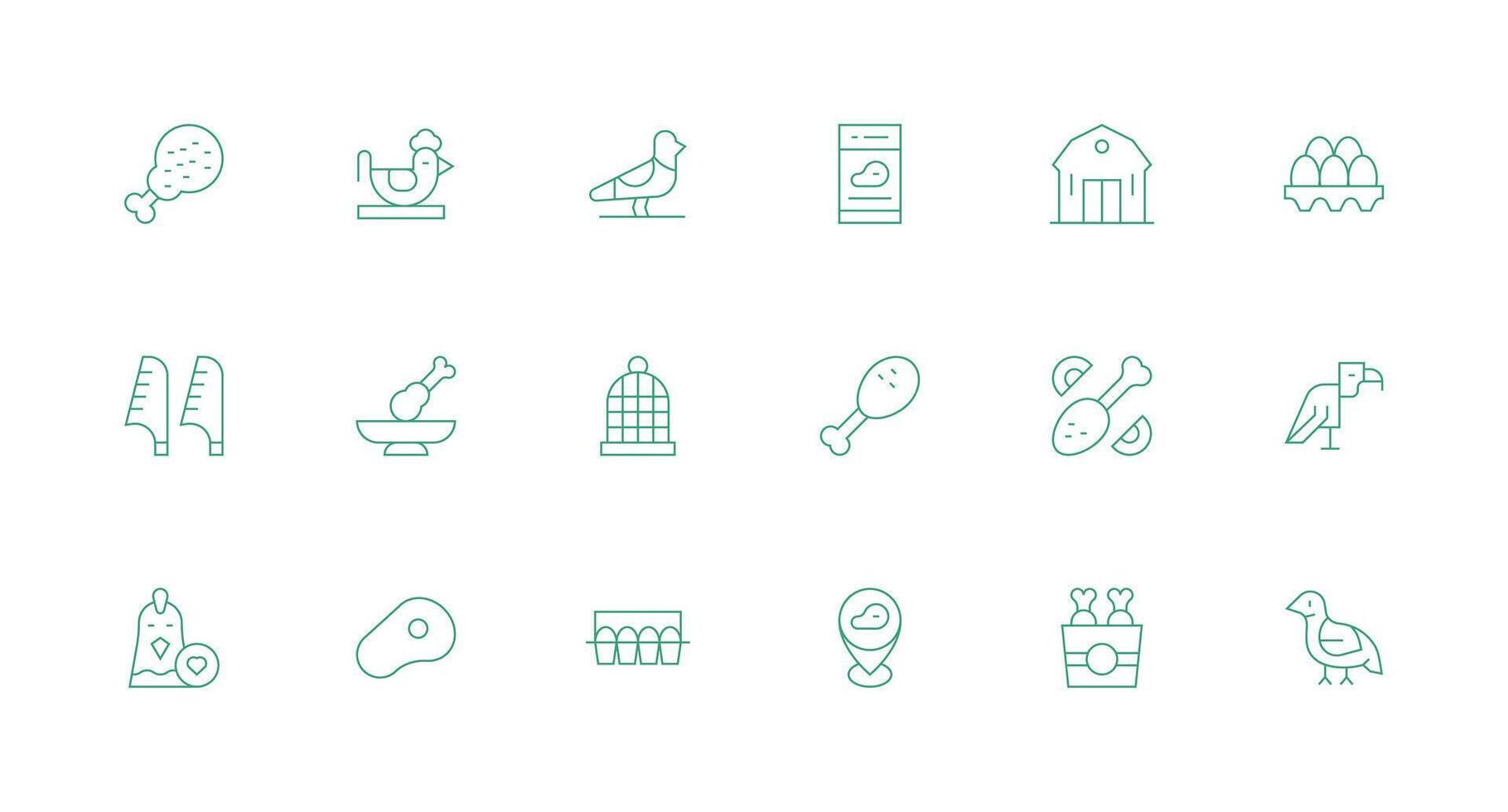 Minimal Line Style Poultry Icons with 18 Vectors Quick Access Icons for UI Development