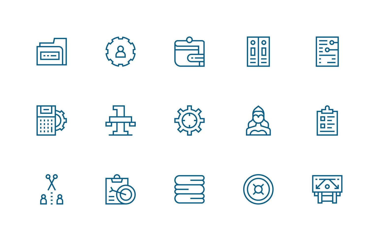 Management Icon Collection with 15 Regular Line Designs Complete Icon Set for Mobile Apps vector