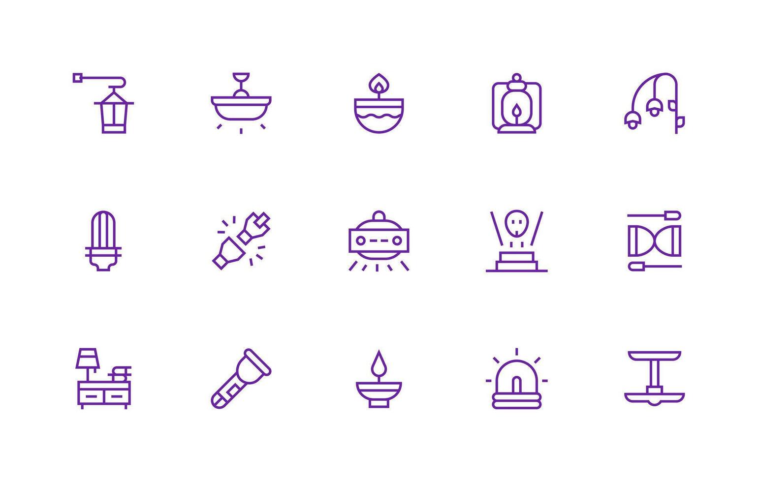 Lamp Icon Set with 15 Regular Line Graphics UI Icon Set vector