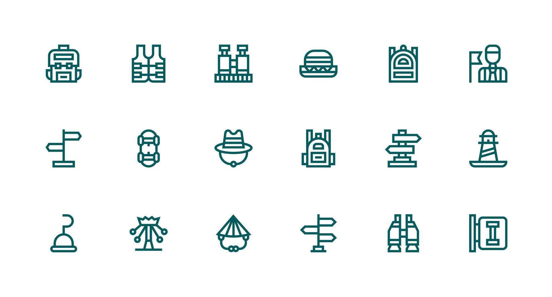 Tourist Set with 18 Strong Stroke Line Icons Flexible Icon System for Web Interfaces Free Vector