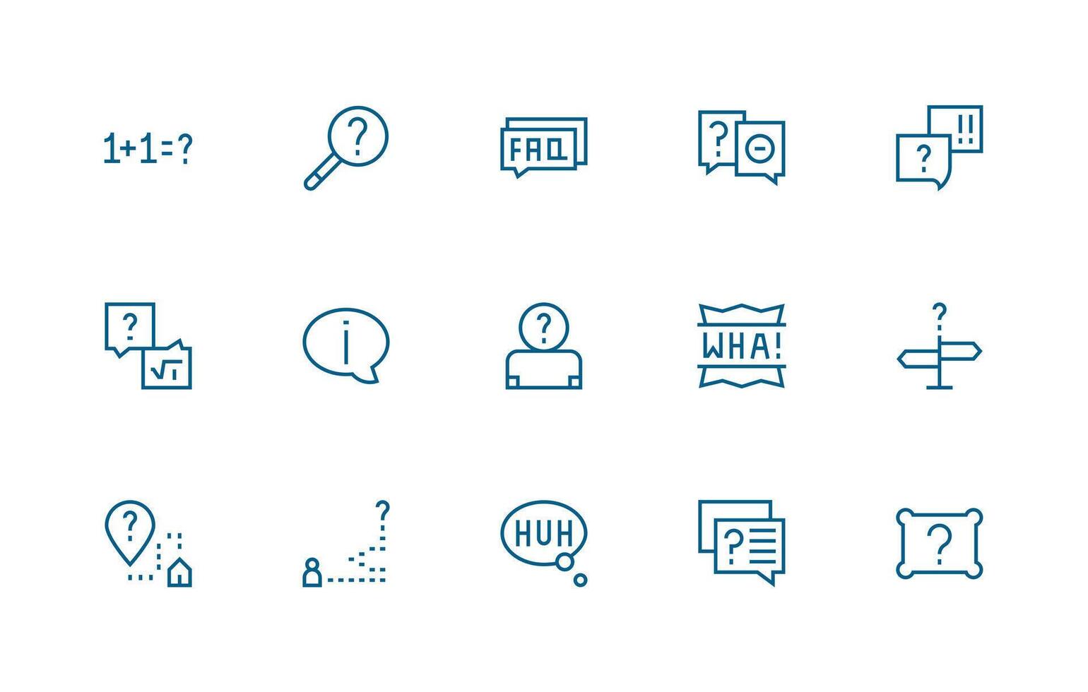 Question Mark Visual Pack containing 15 Regular Line Icons Fully Editable Icon Set for Web Free Vector