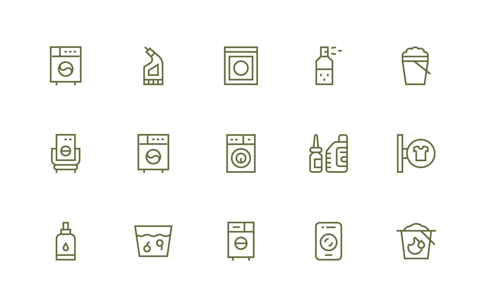 Detergent Icon Set with 15 Regular Line Graphics Quick Access Icons for UI Development vector