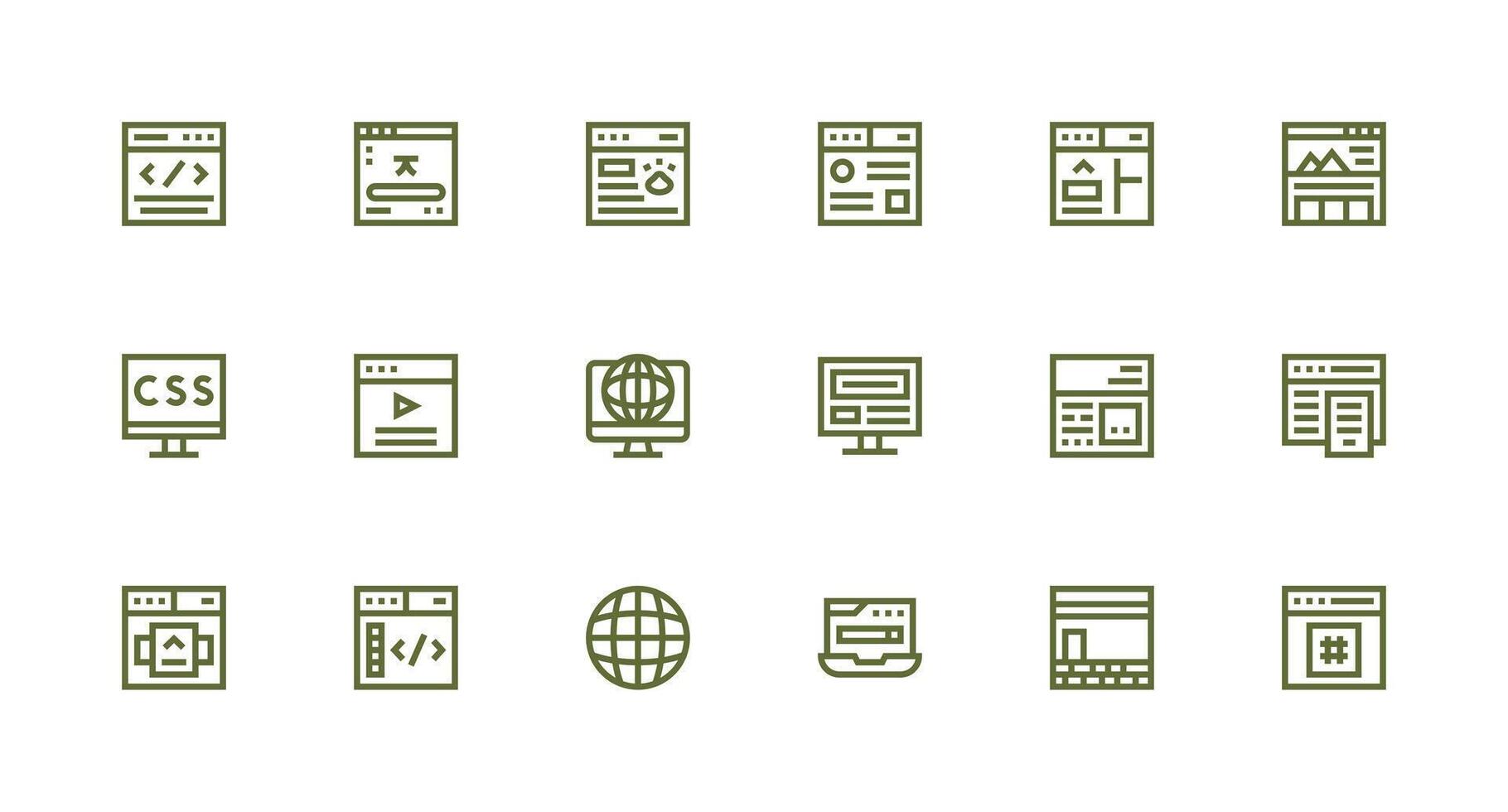 Strong Stroke Line Icons from Browser Set with 18 Vectors Multi-Style Icon Collection Free Vector