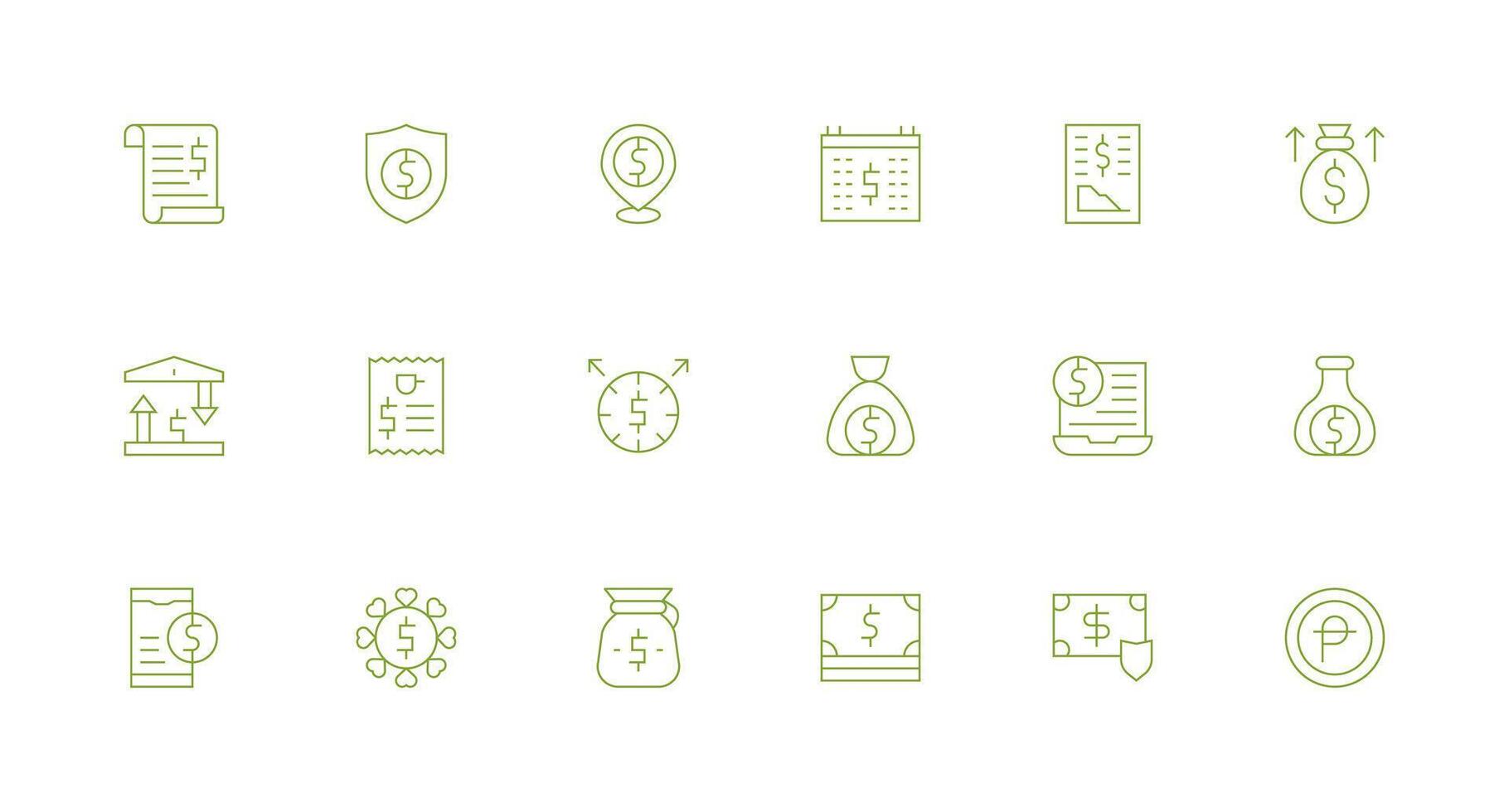 Dollar Icon Collection with 18 Minimal Line Designs Complete Icon Bundle for Web Design Free Vector