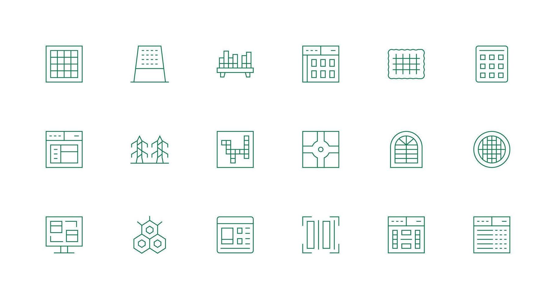 Grid including 18 Minimal Line Illustrations Quick Access Icons for UI Development Free Vector