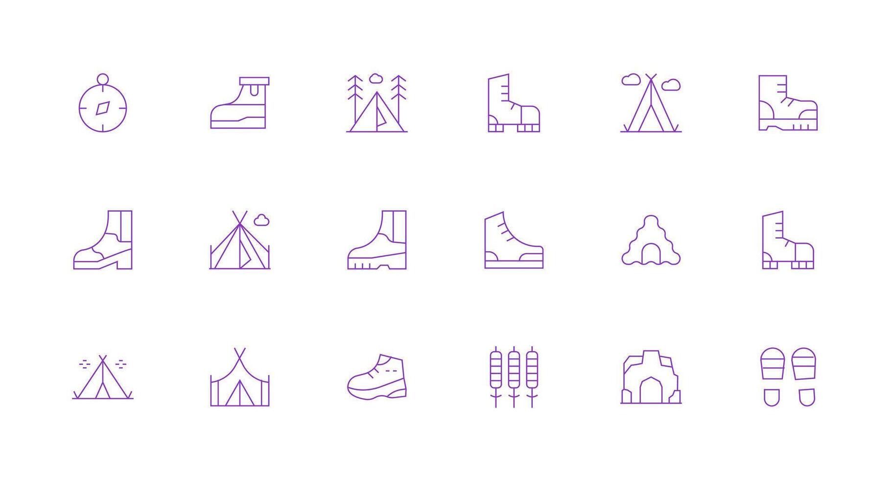 18 Minimal Line Style Icons from Trekking Collection Minimal Icon Set for Interface Projects vector