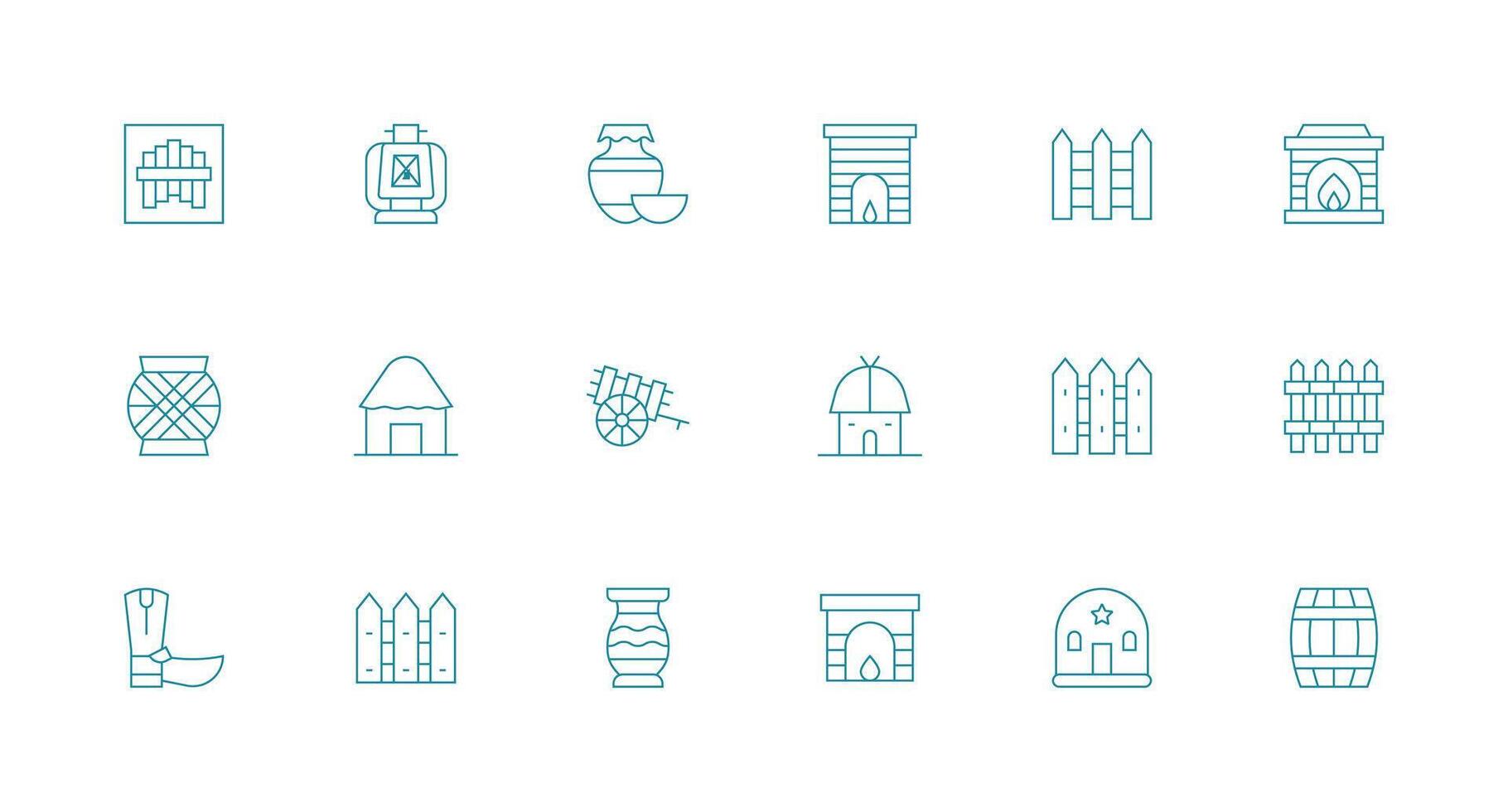 Rustic Design Icons featuring 18 in Minimal Line Style Icon Collection Set Free Vector
