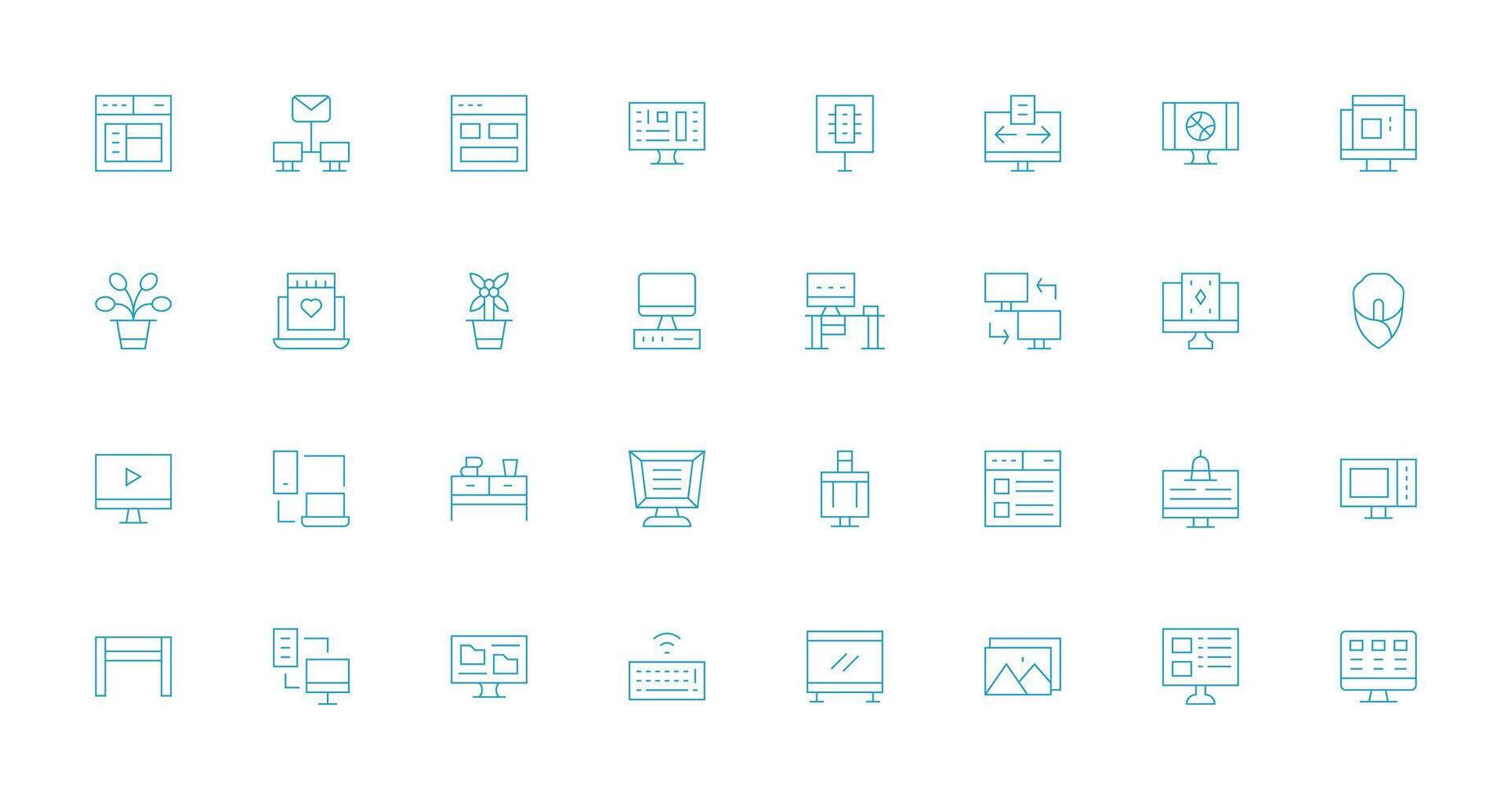 32 Icons for Desktop in Thin Line Format Minimal Icon Set for Interface Projects vector