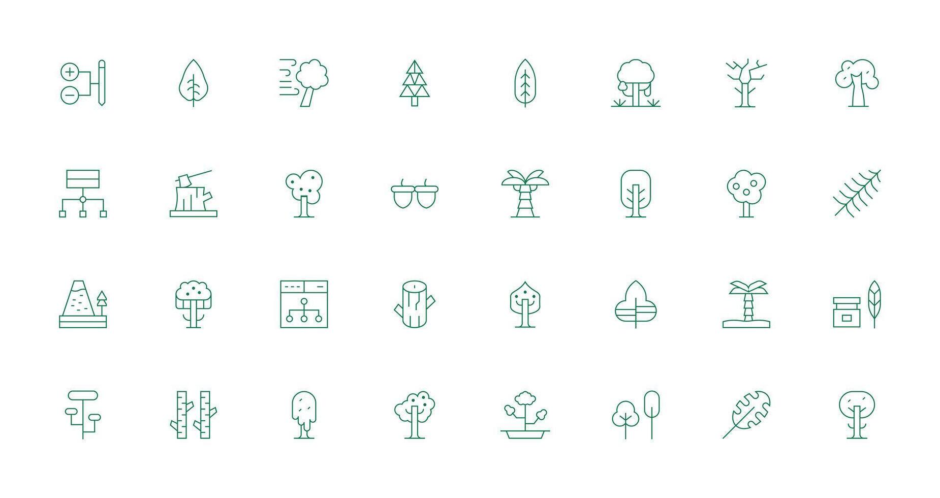 32 Icons for Tree in Thin Line Format Interface Icon Collection for Daily Projects vector