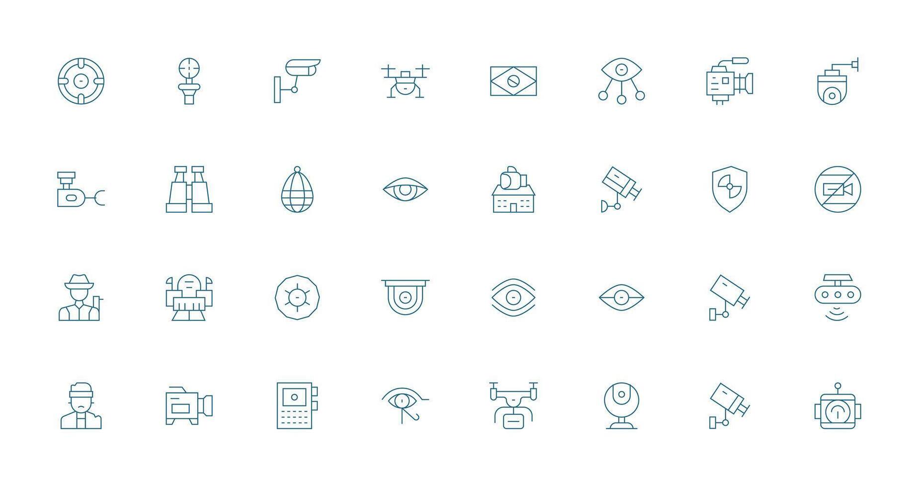 32 Thin Line Icons for Surveillance Graphics Simple Icons for Interface and Wireframes Free Vector