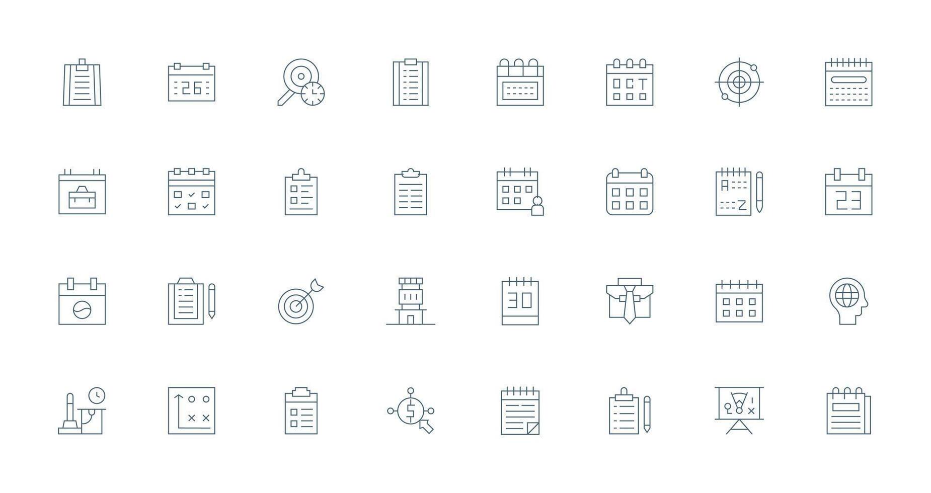32 Thin Line Icons for Planning Graphics Clear and Concise Icon Set Collection Free Vector