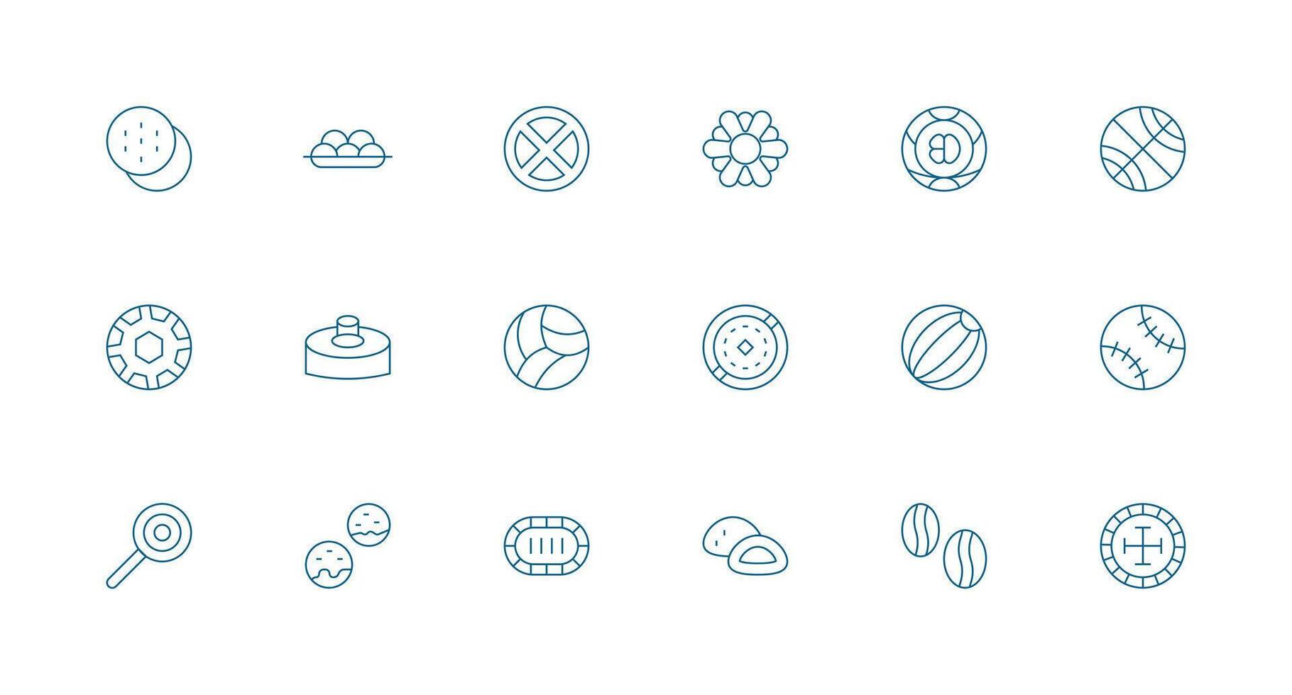 Round Icon Set with 18 Minimal Line Graphics Simple Icons for Interface and Wireframes Free Vector