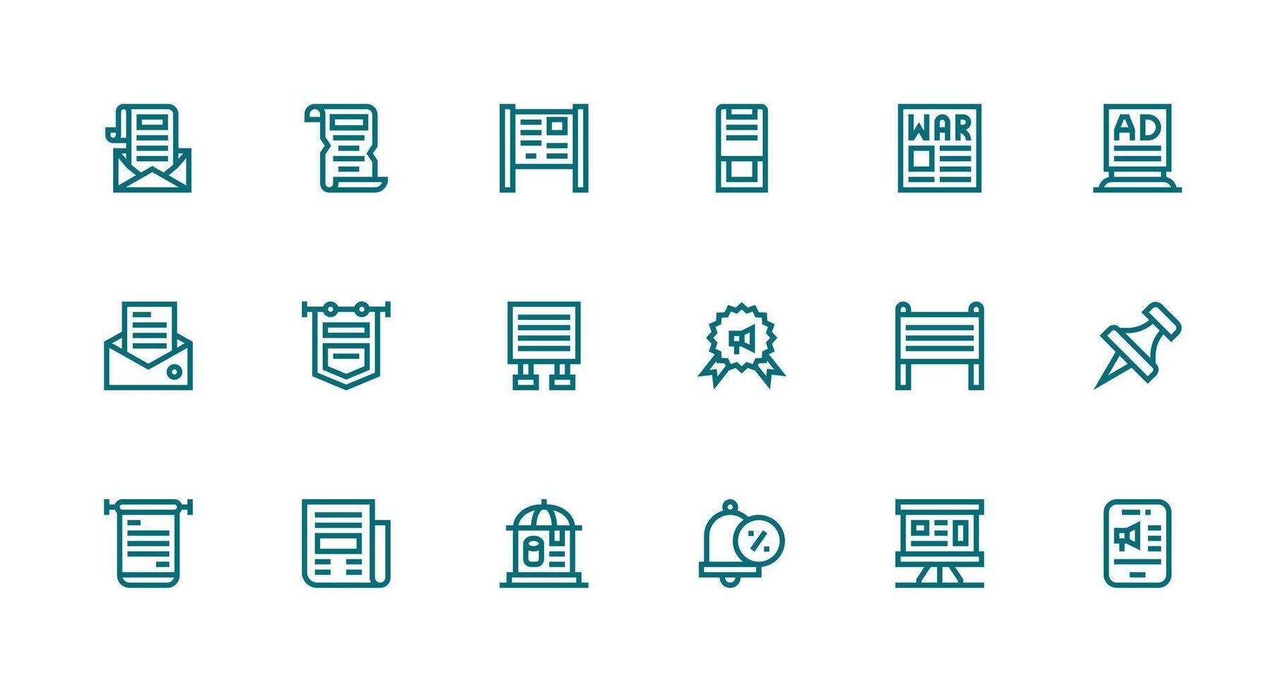 18 Icons for Bulletin in Strong Stroke Line Format UI and UX Focused Icon Collection Free Vector