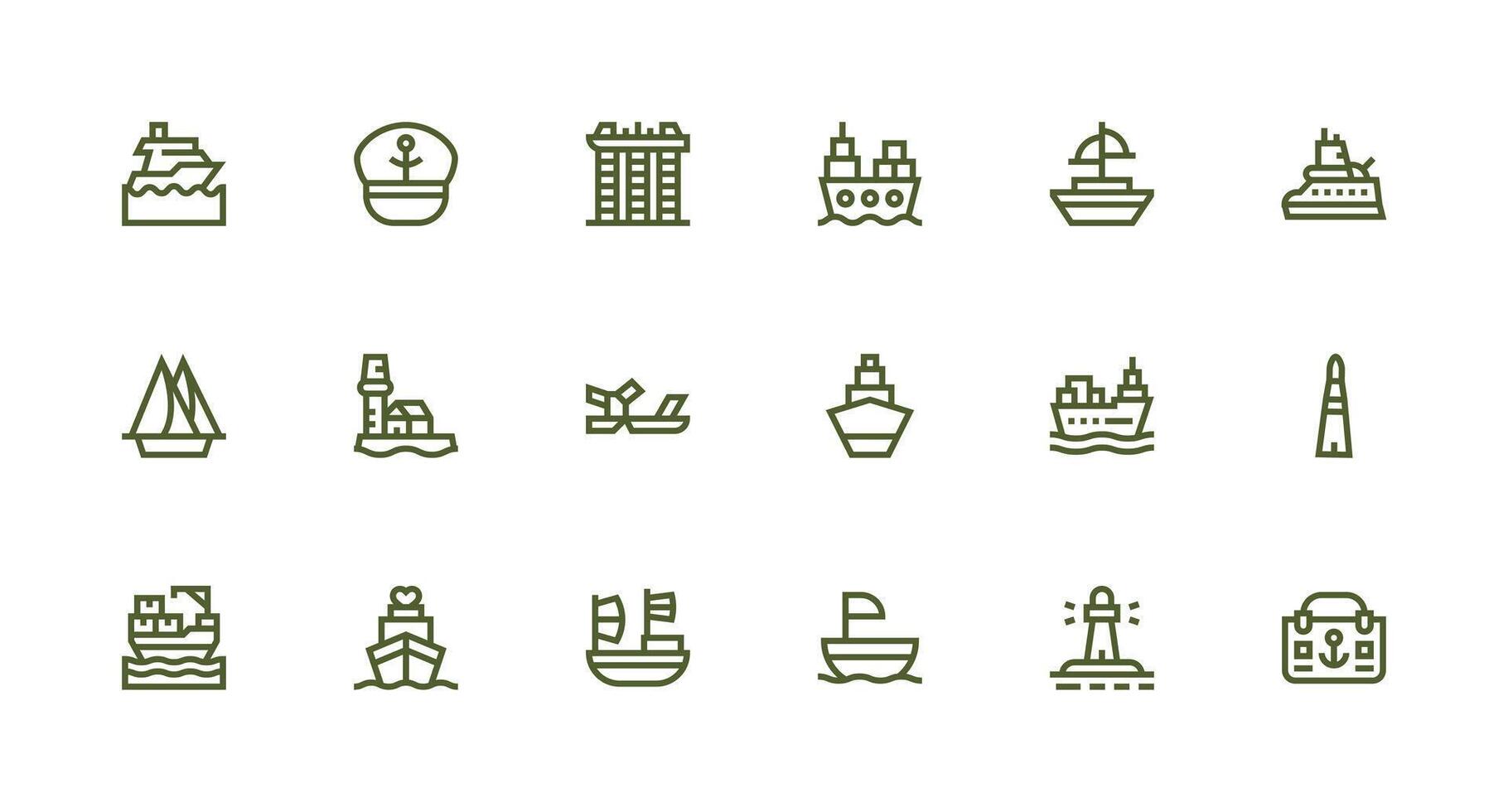 Strong Stroke Line Icons from Harbor Set with 18 Vectors Minimal Icon Set for Interface Projects Free Vector