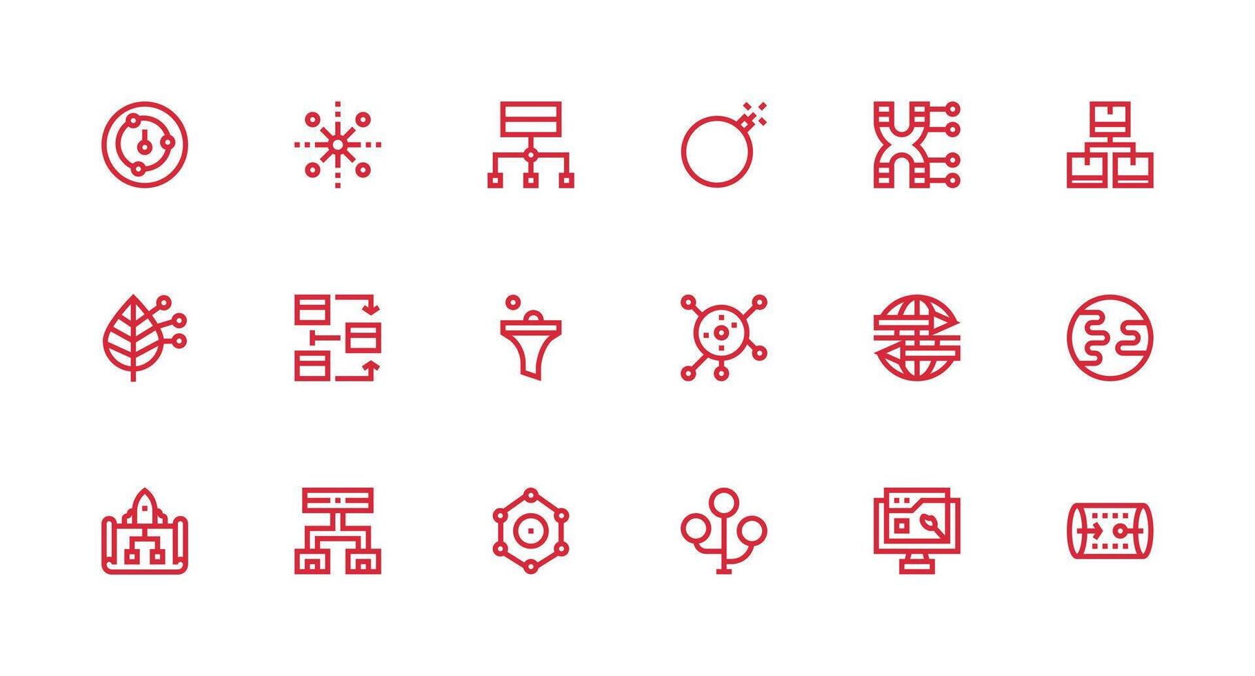 Dataflow Visual Pack containing 18 Strong Stroke Line Icons Essential Icons for Rapid UI Building Free Vector