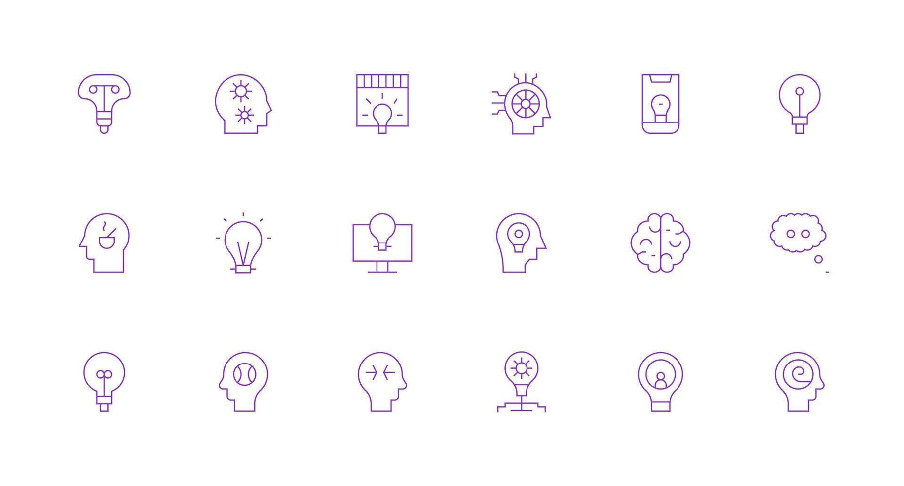 Thinking Icon Collection with 18 Minimal Line Designs High-Resolution Icons for Any Platform Free Vector