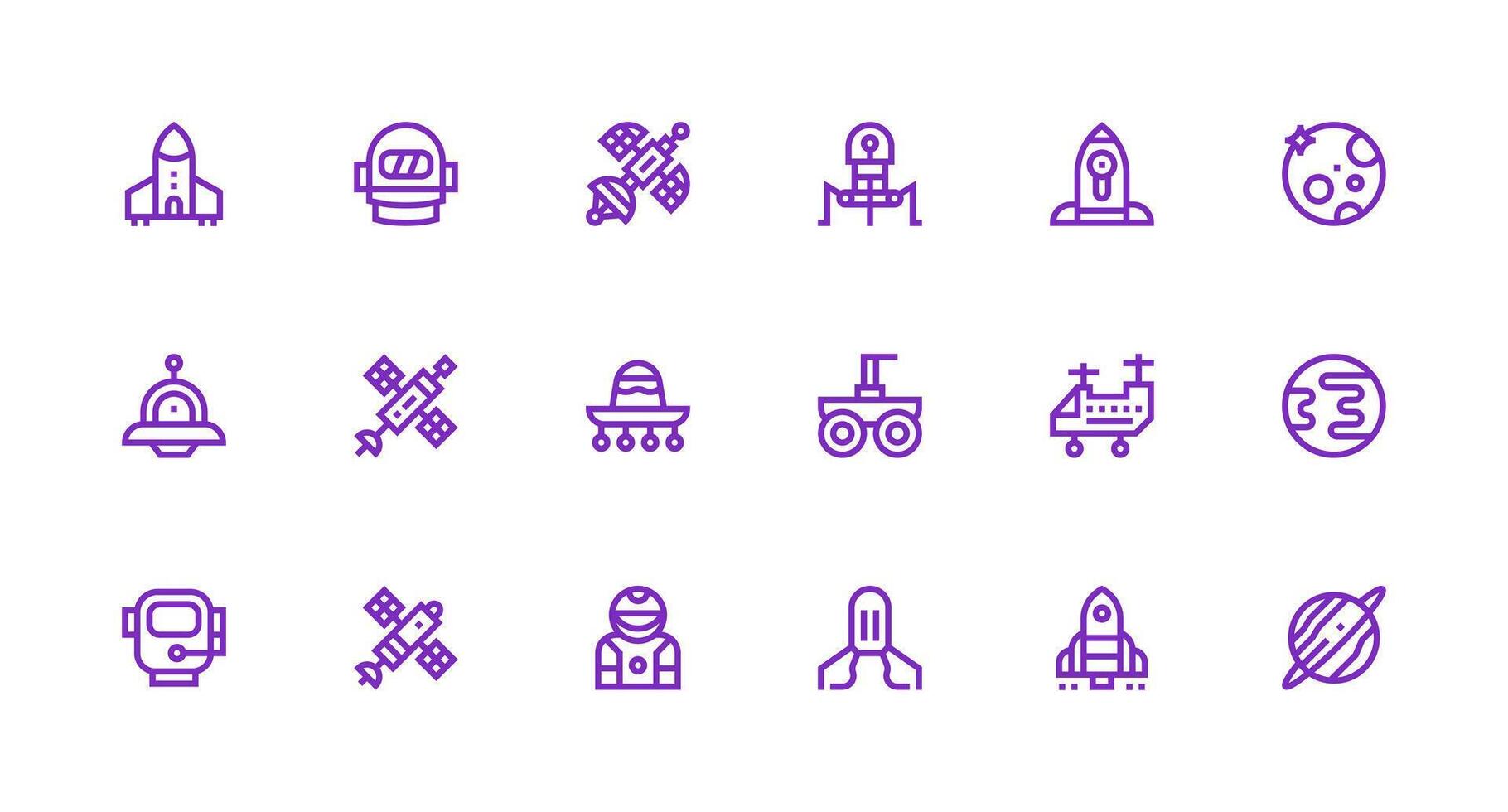 Spacecraft Design Icons featuring 18 in Strong Stroke Line Style Clear and Concise Icon Set Collection vector