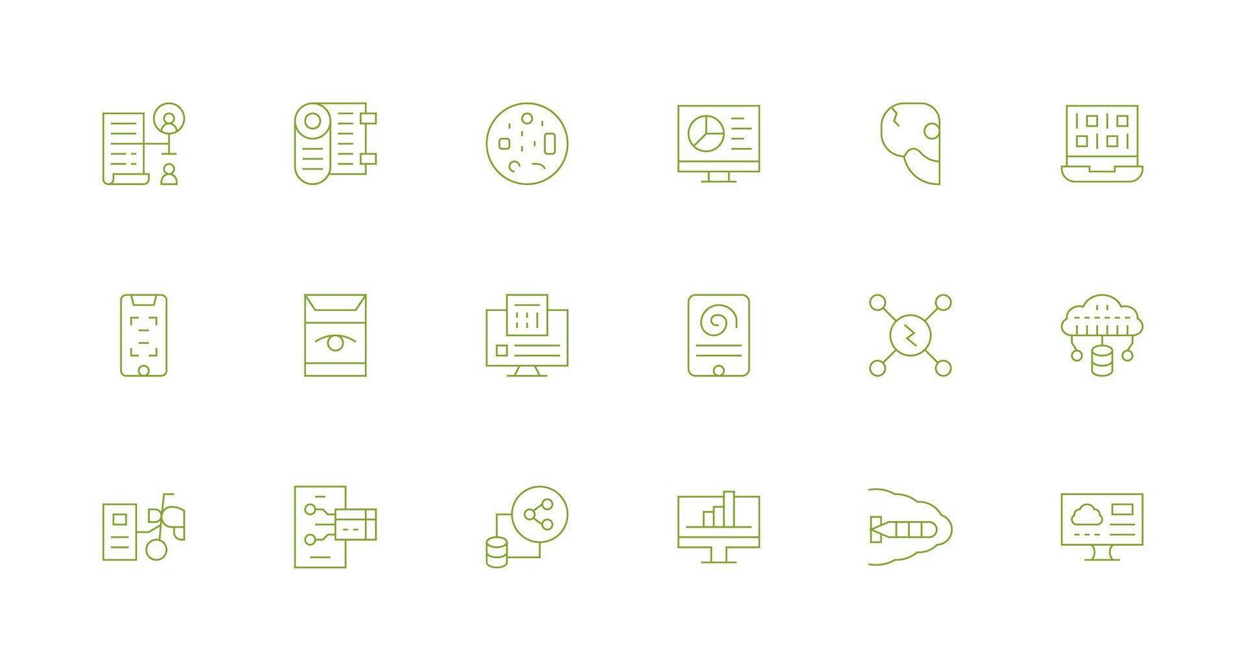 Minimal Line Style Digital Data Icons with 18 Vectors Essential Icon Set for Teams Free Vector