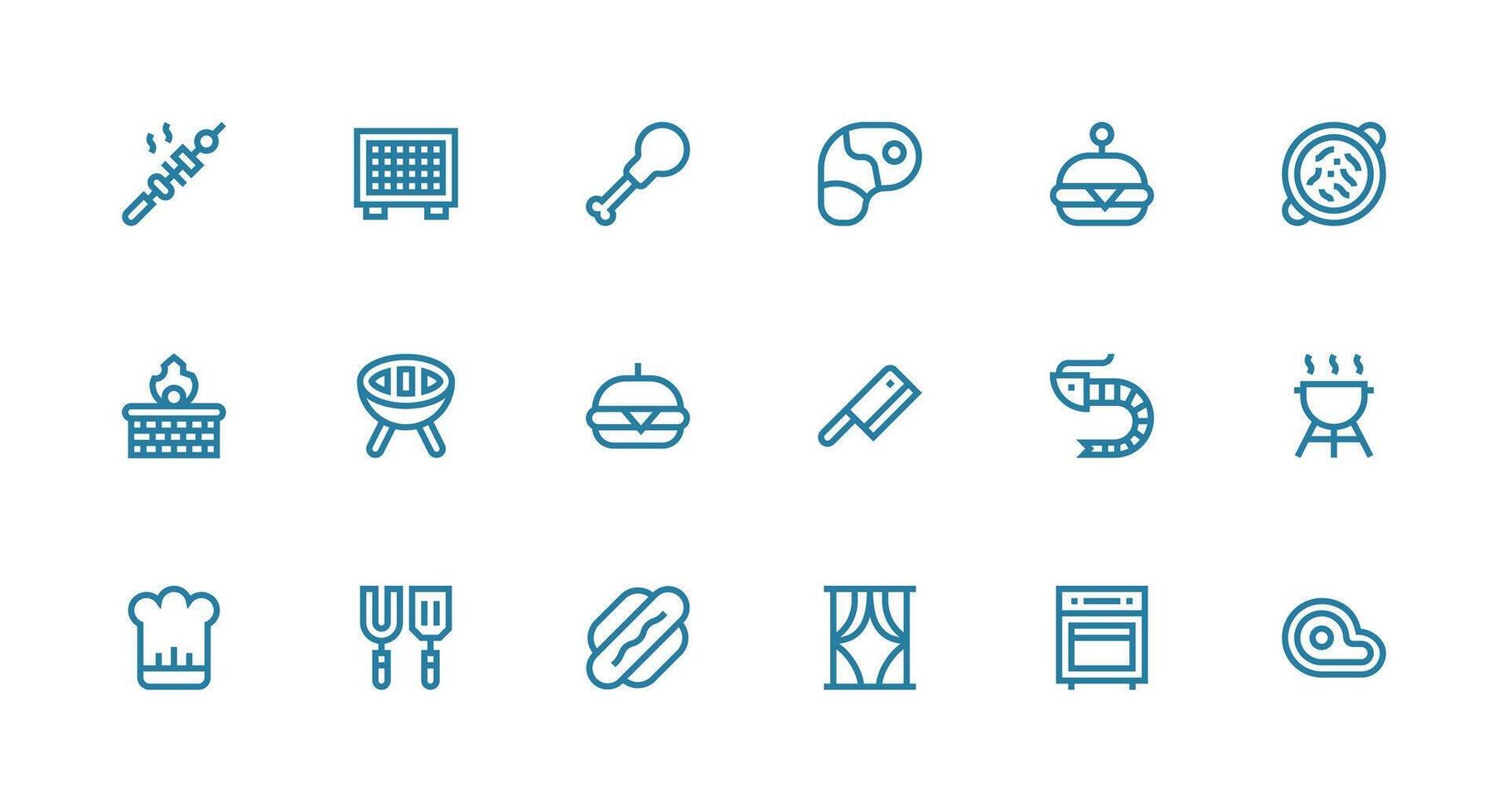 Strong Stroke Line Style Grill Icons with 18 Vectors Flexible Icon System for Web Interfaces Free Vector