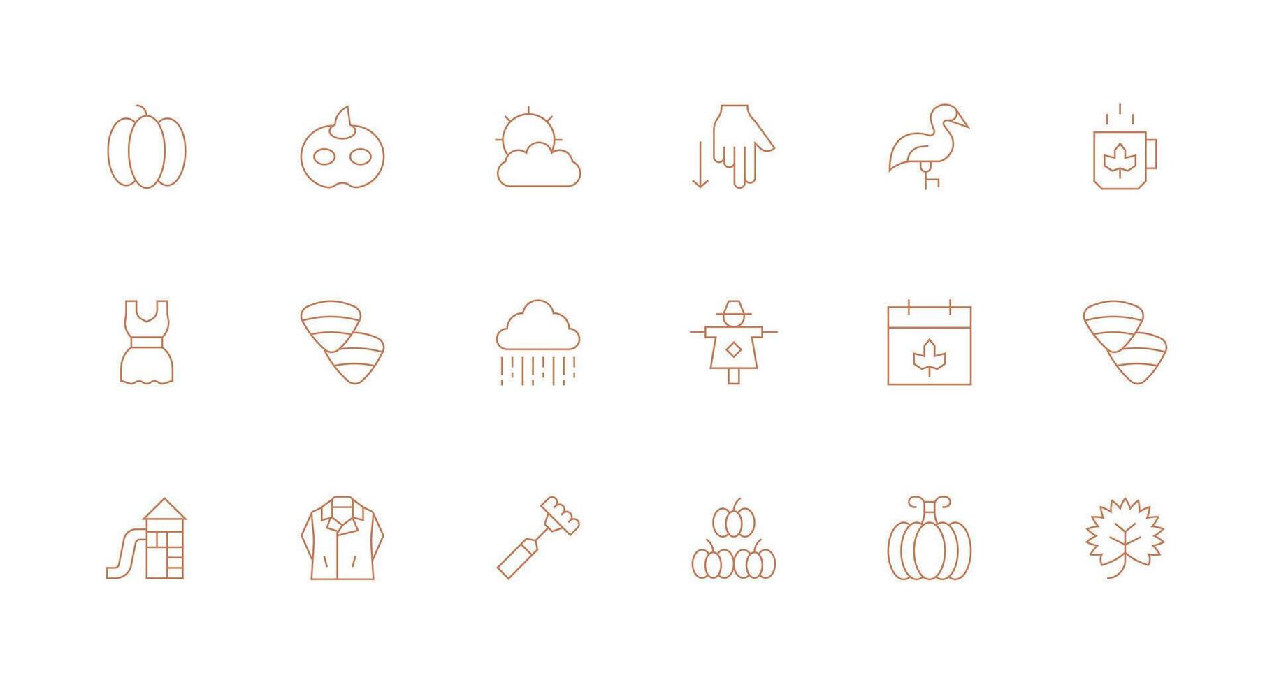 Fall Design Icons featuring 18 in Minimal Line Style Functional Icon Series Free Vector