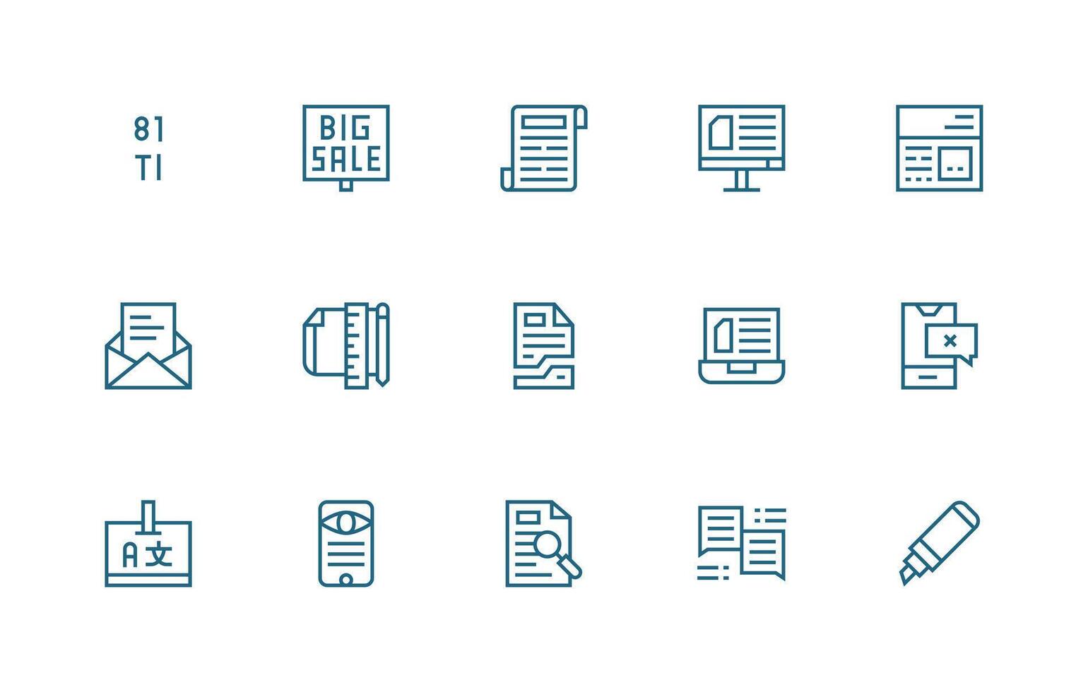 Regular Line Icons from Text Set with 15 Vectors Essential Icon Set for Teams