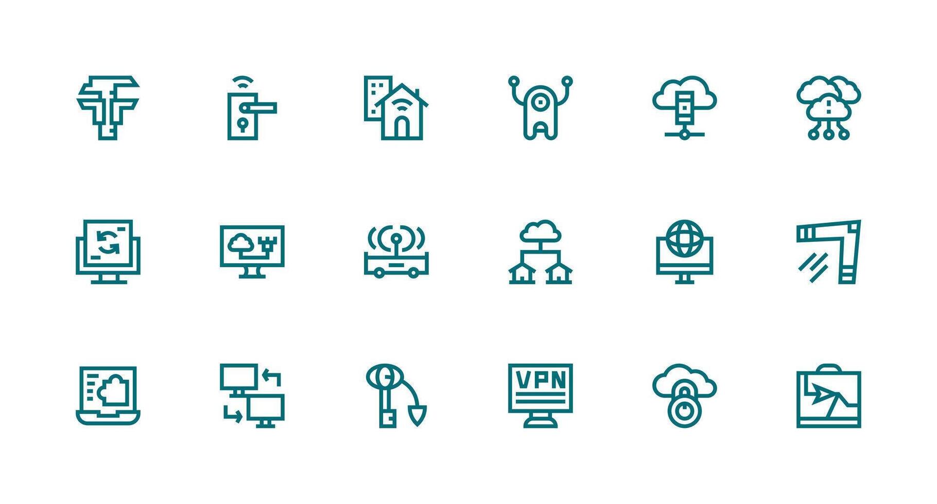 Remote Access featuring 18 Icons in Strong Stroke Line Design Icon Set for Projects vector