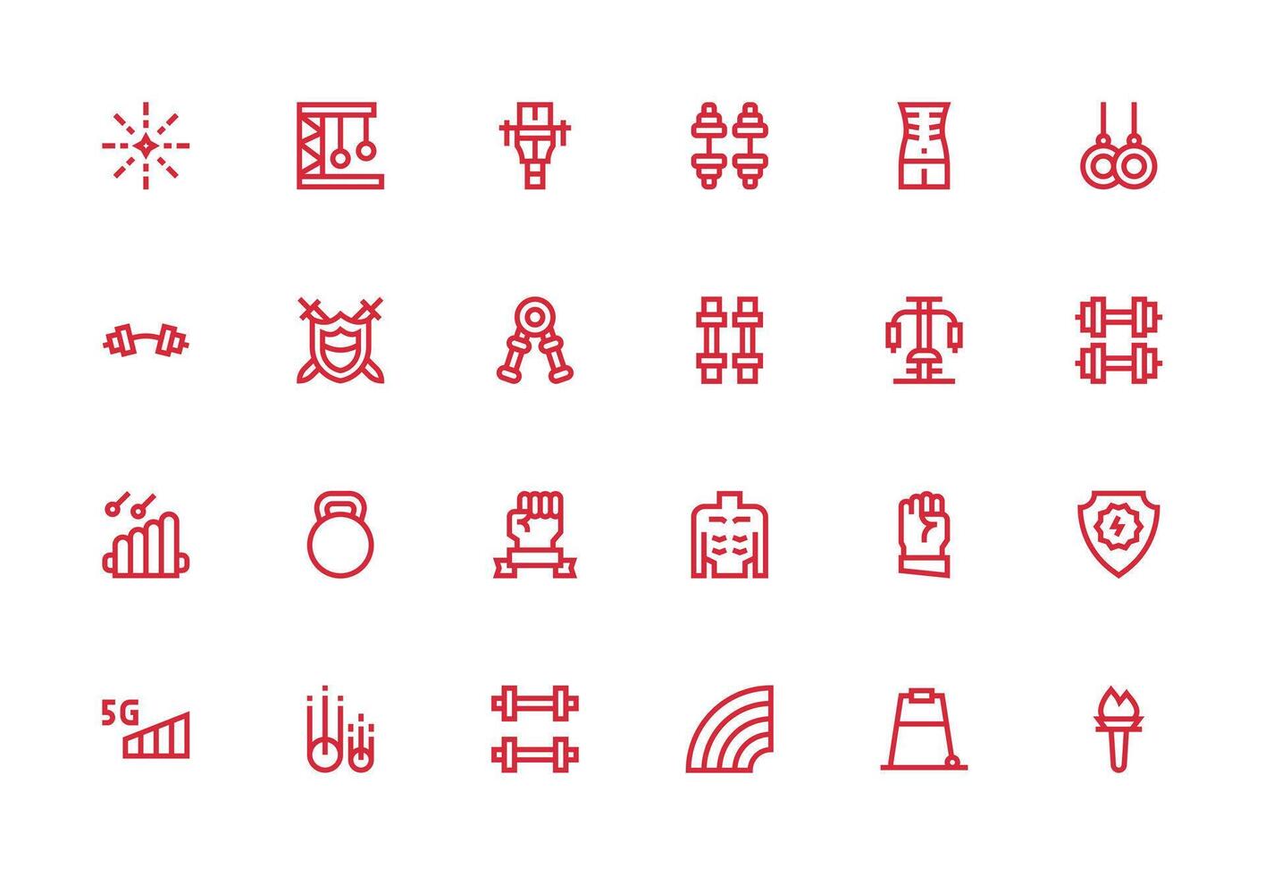 Strength Icon Set with 24 Thick Line Line Graphics UI and UX Focused Icon Collection vector