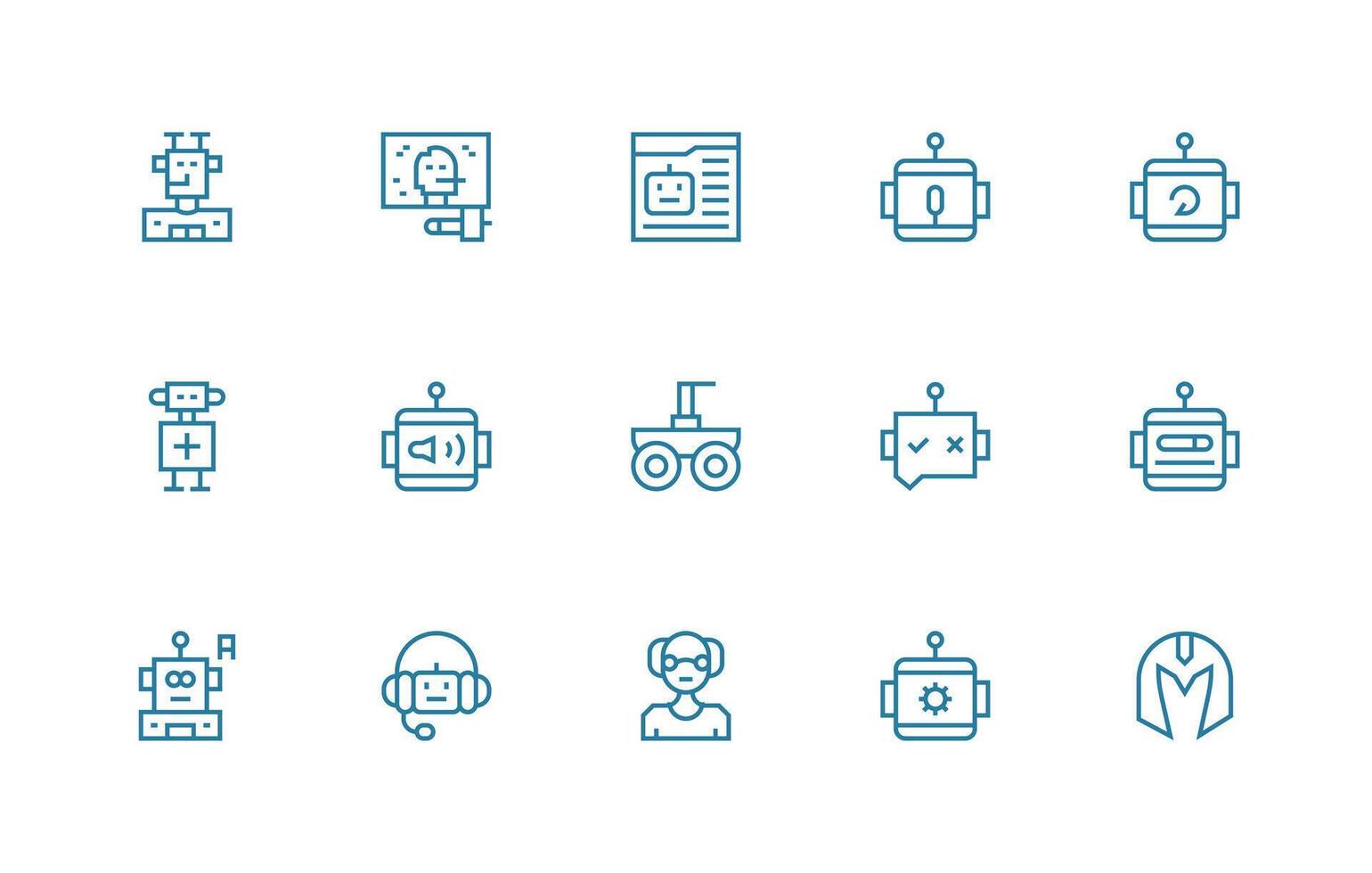 Regular Line Style Robot Icons with 15 Vectors UI-Ready Icon Collection