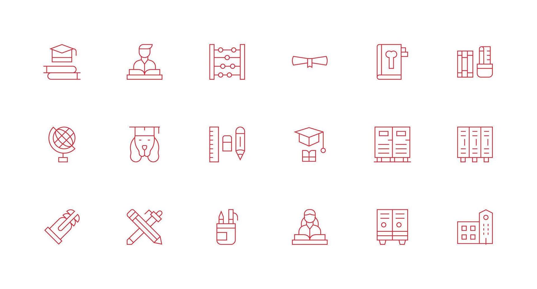18 Minimal Line Icons for School Graphics Scalable Icons for Cross-Platform Interfaces Free Vector