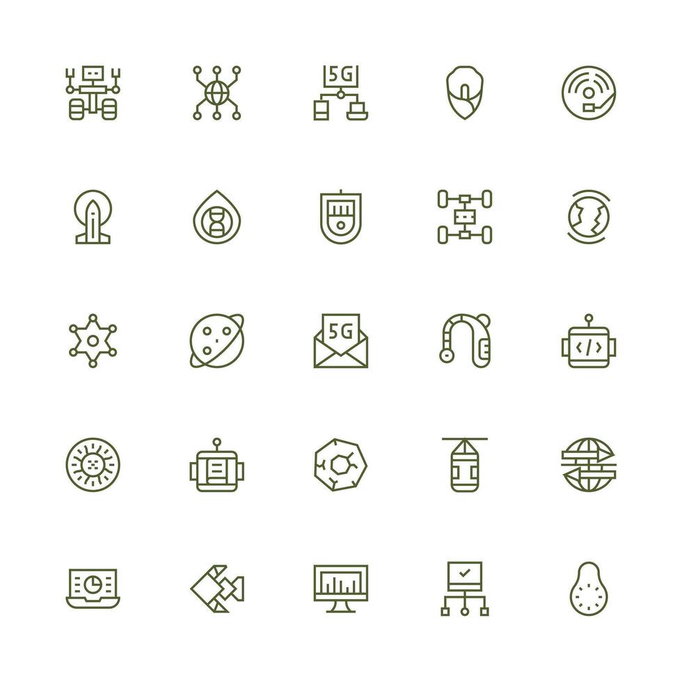 25 Medium Stroke Outline Style Icons from Technology Collection Clean Icon Collection for Web Use vector