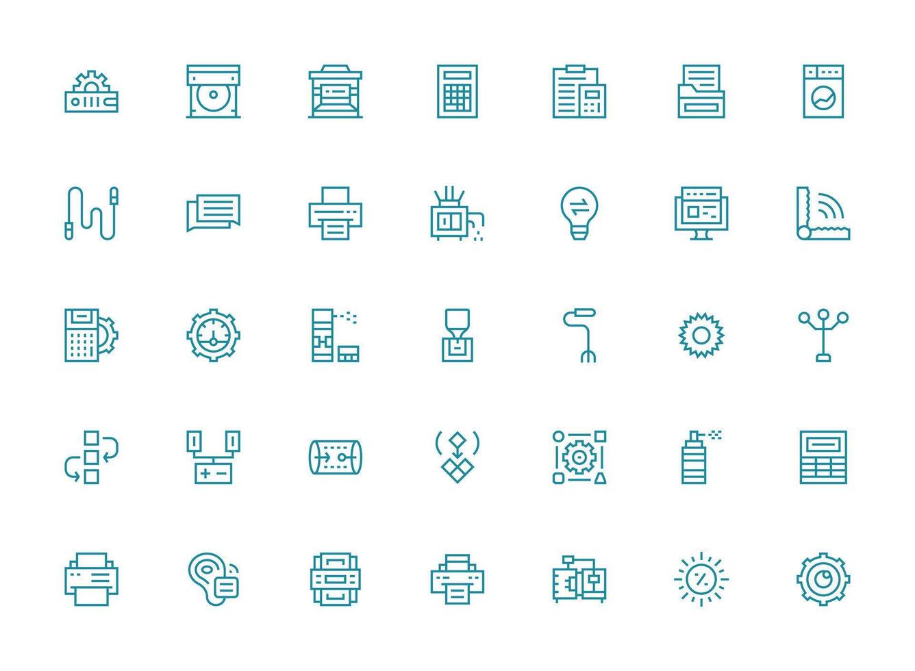 Regular Clean Line Style Output Icons with 35 Vectors UI and UX Focused Icon Collection Free Vector