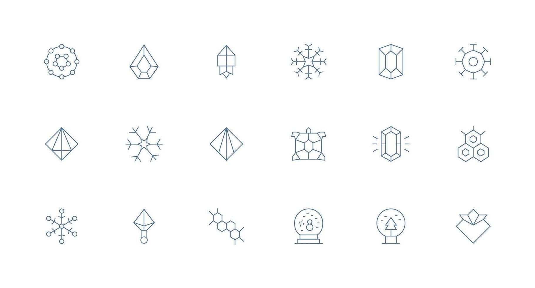 Crystal Set with 18 Minimal Line Icons Clear and Concise Icon Set Collection Free Vector
