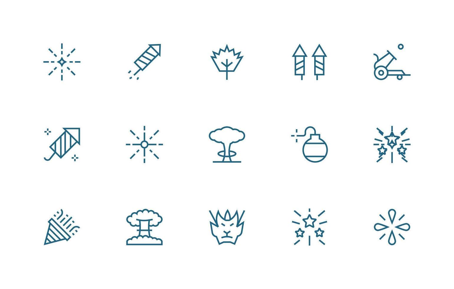 Explosion Icon Set with 15 Regular Line Graphics Basic Icon Series vector
