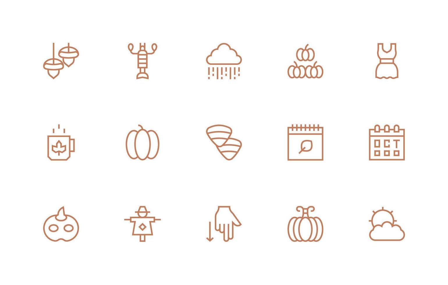 Fall Icon Set with 15 Regular Line Graphics Complete Icon Bundle for Web Design vector