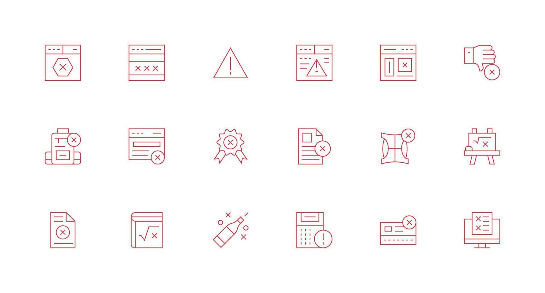 Incorrect Icon Set with 18 Minimal Line Graphics Icon Collection Set Free Vector