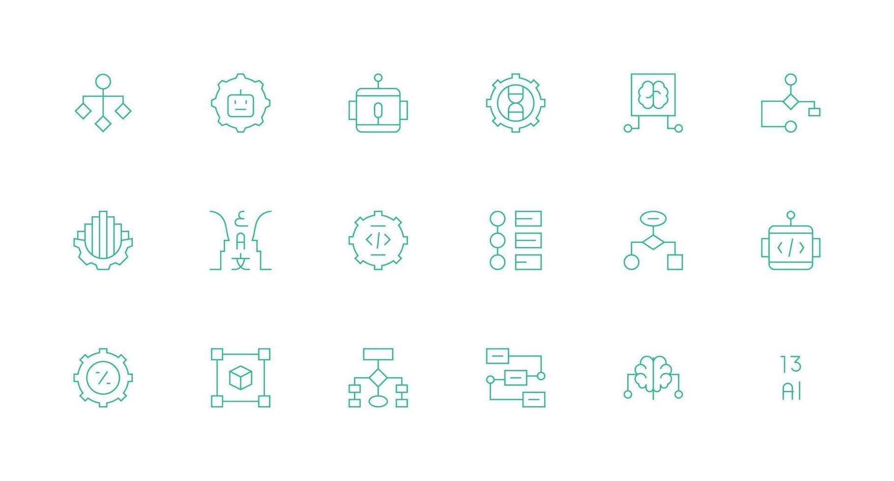 Algorithm Icon Set with 18 Minimal Line Graphics Display Icon Pack Free Vector