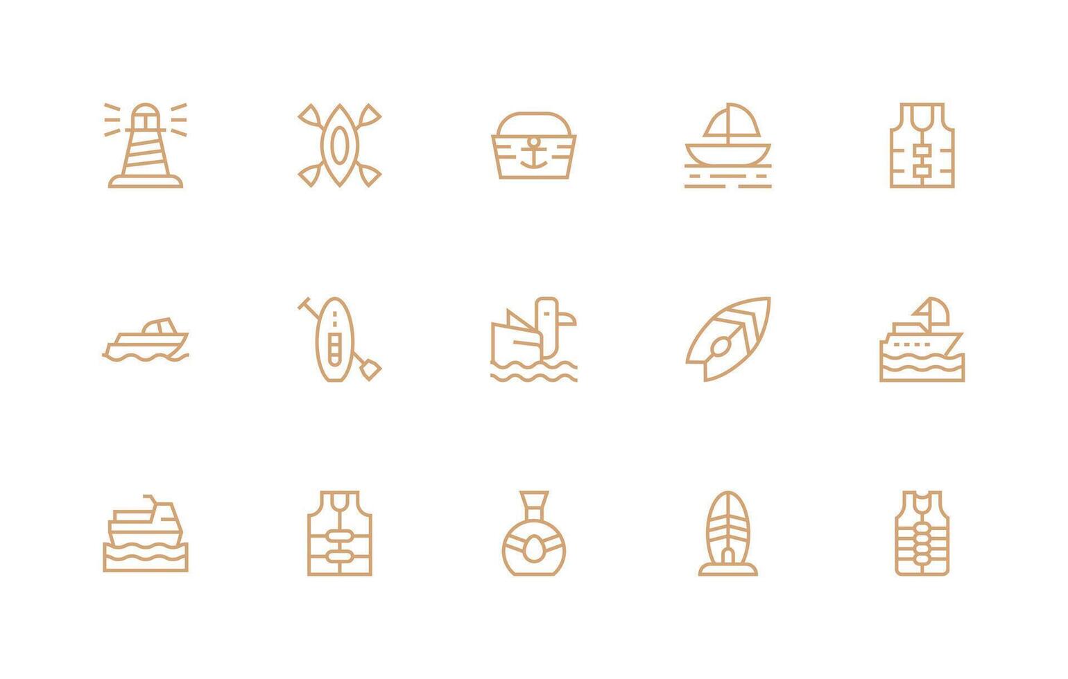 15 Icons for Sailing in Regular Line Format Complete Icon Bundle for Web Design vector