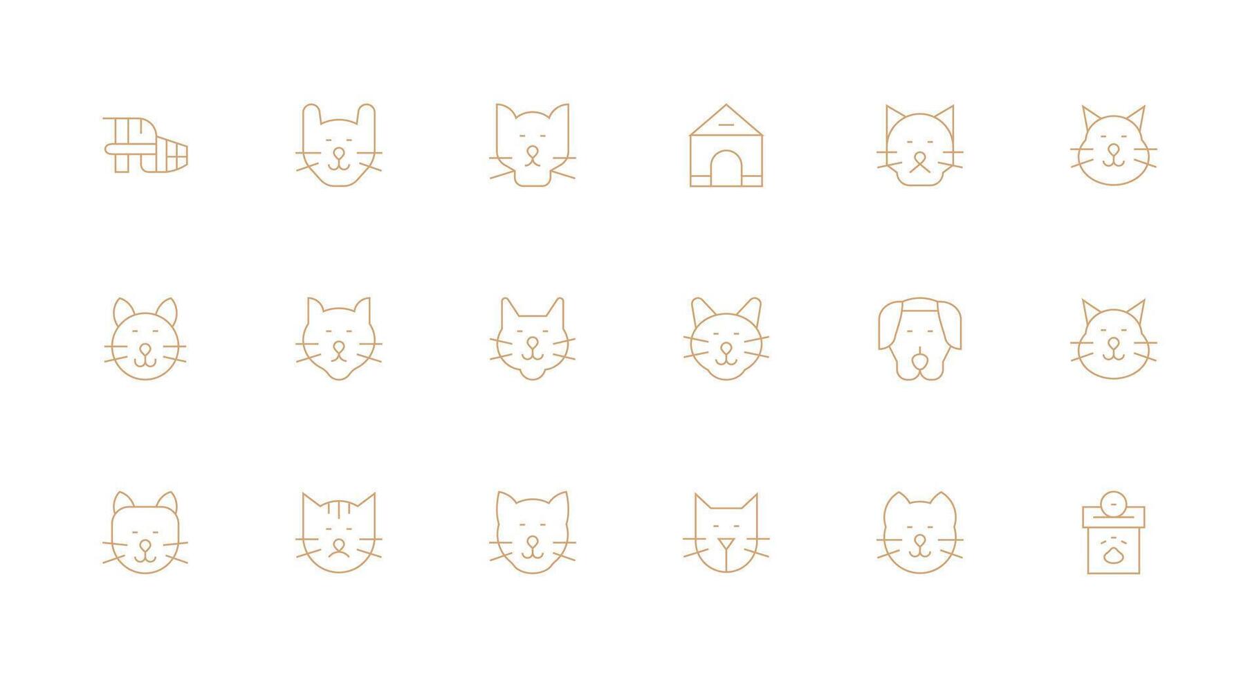 Animal Shelter featuring 18 Icons in Minimal Line Design Scalable Icons for Cross-Platform Interfaces Free Vector