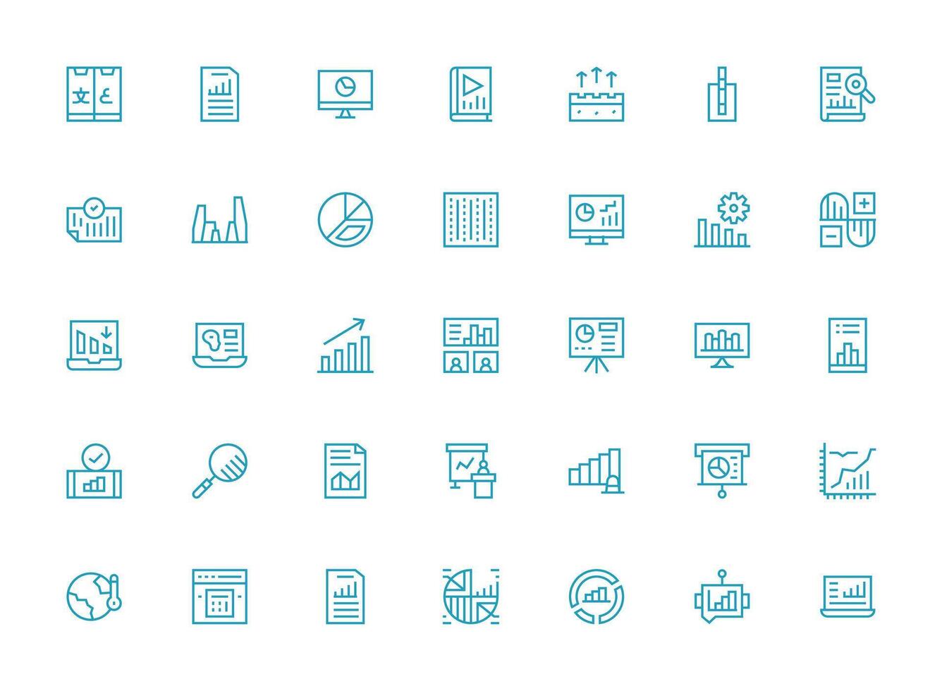 Regular Clean Line Icons from Statistics Set with 35 Vectors Icon Set Free Vector