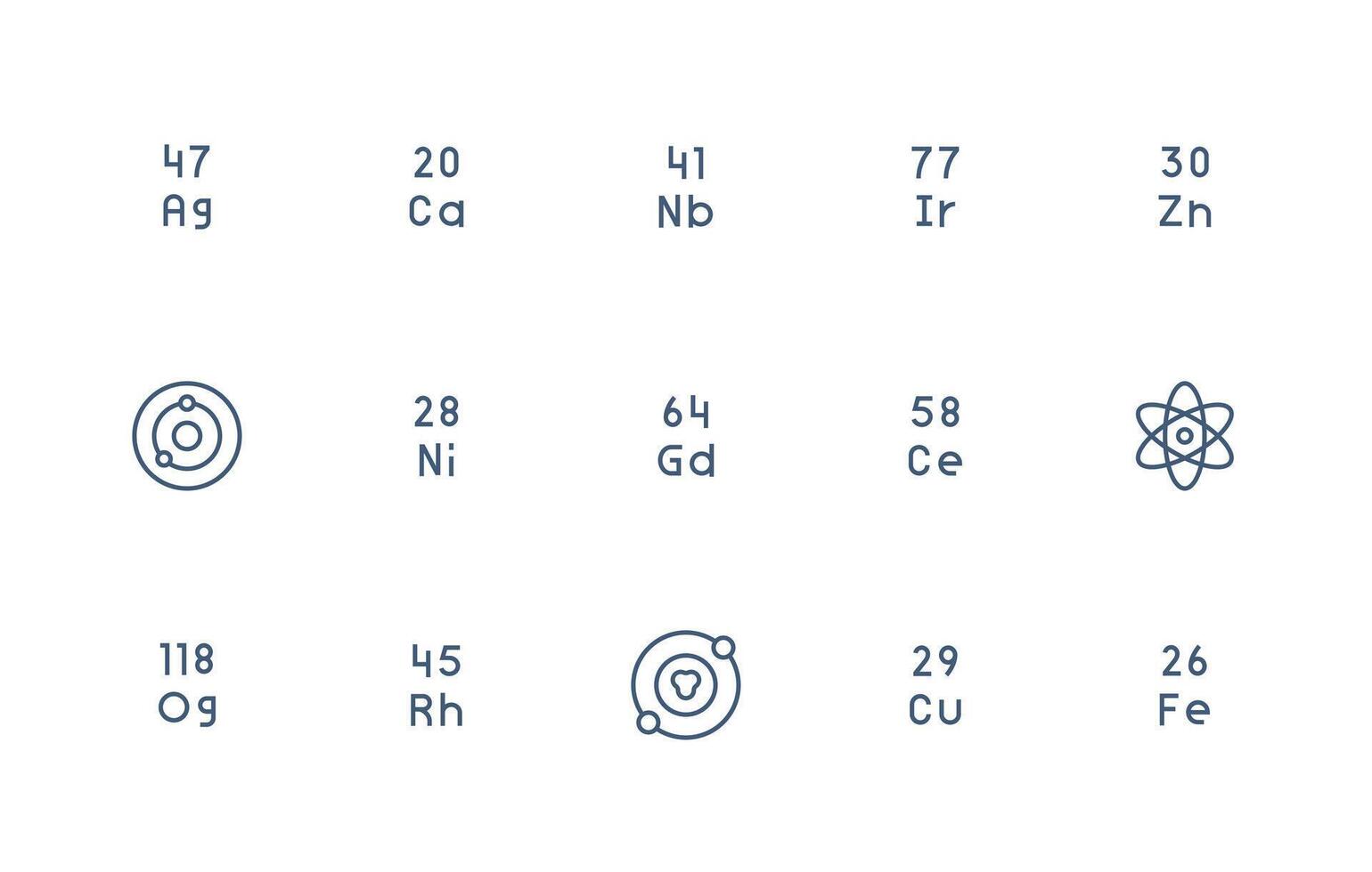 Periodic Table Icon Set with 15 Regular Line Graphics All Device Compatible Icon Set vector