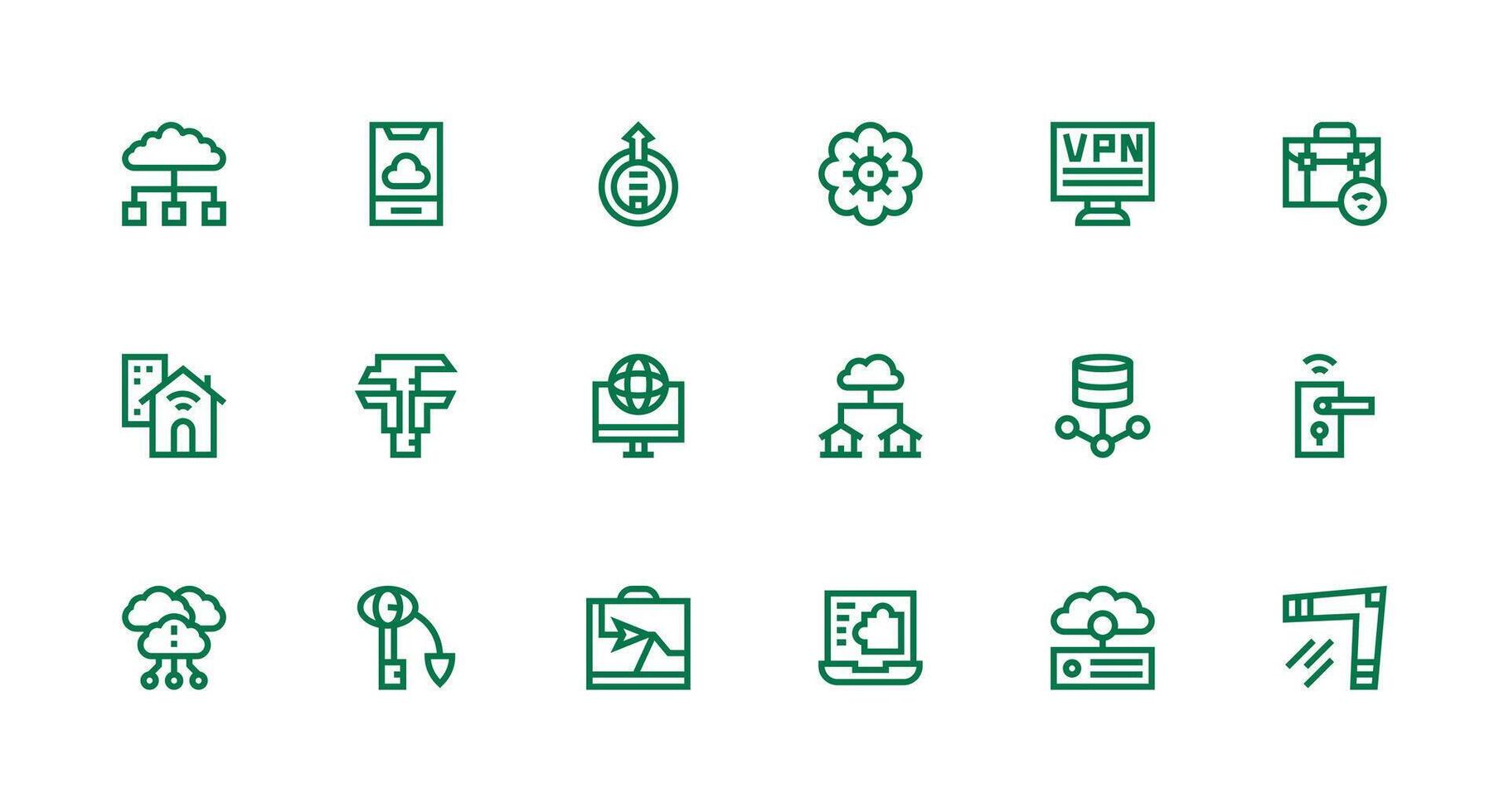 Remote Access Visual Pack containing 18 Strong Stroke Line Icons Fully Editable Icon Set for Web Free Vector