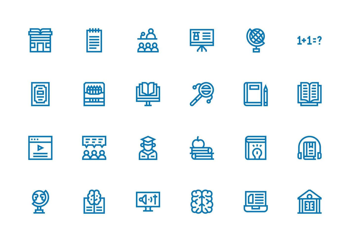 Learning Set with 24 Thick Line Line Icons UI-Ready Icon Collection Free Vector
