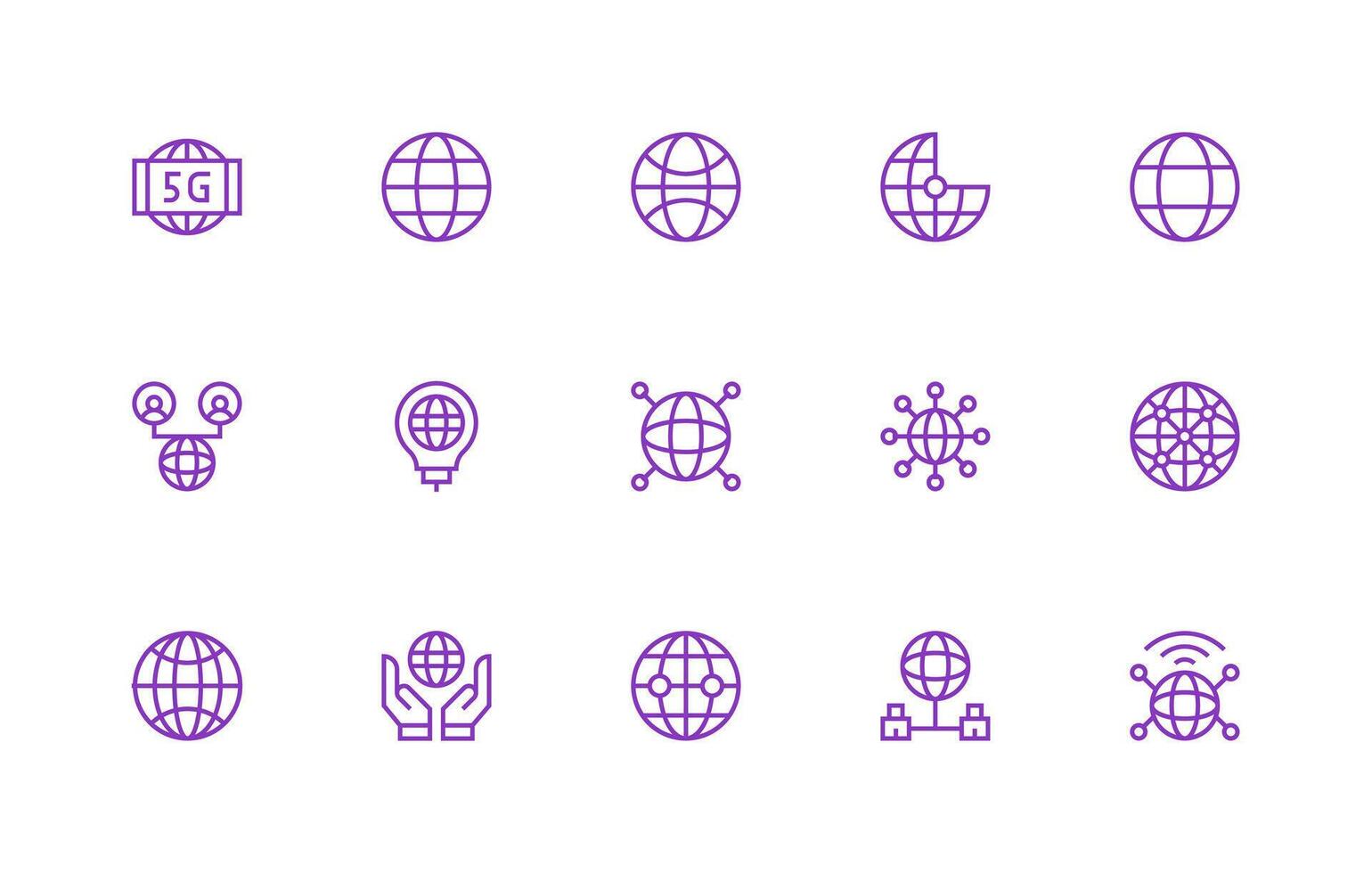 Worldwide Network Design Icons featuring 15 in Regular Line Style Well-Structured Icons for Creative Use vector