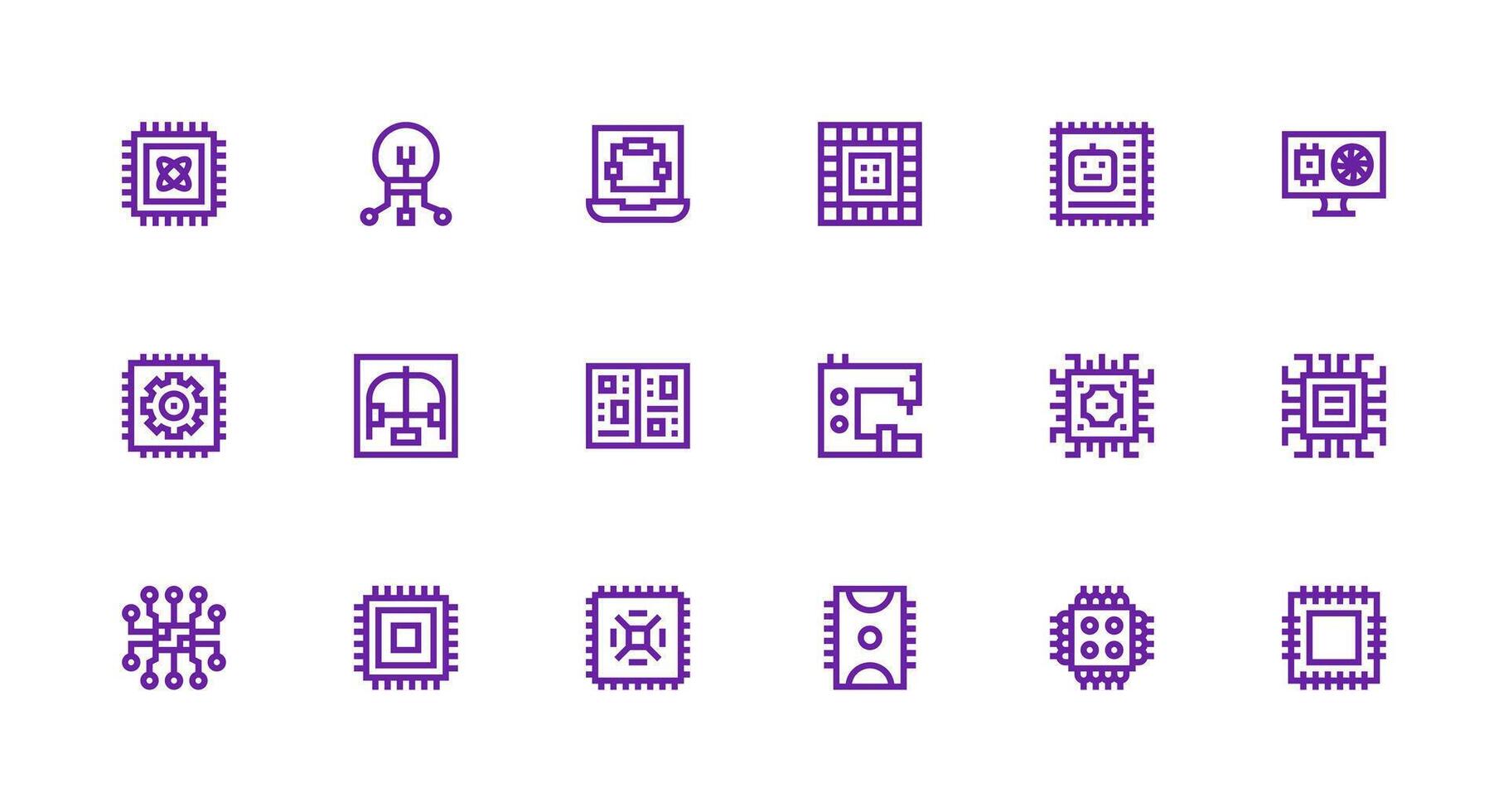 Processor featuring 18 Icons in Strong Stroke Line Design Icon Set for Projects Free Vector