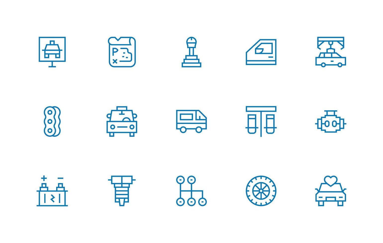15 Regular Line Icons for Automobile Graphics Essential Icons for Rapid UI Building vector