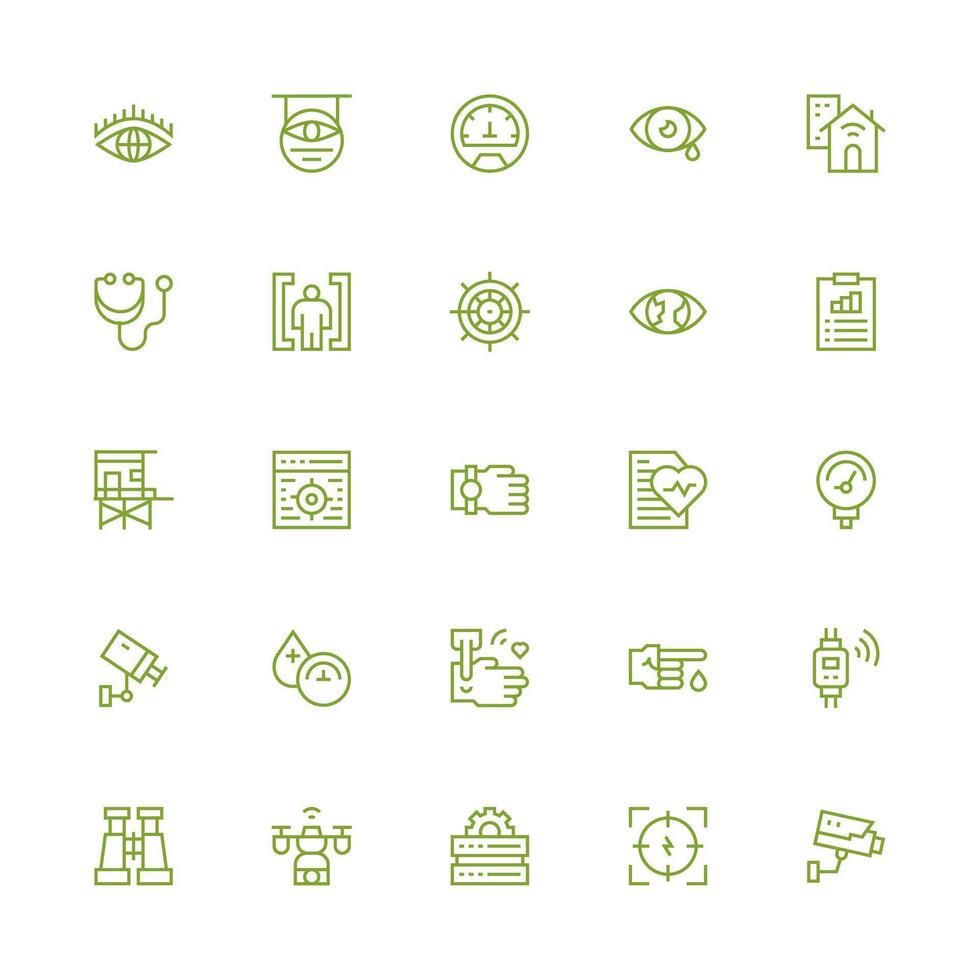 Monitoring Icon Set with 25 Medium Stroke Outline Graphics Icon Set for Web Free Vector