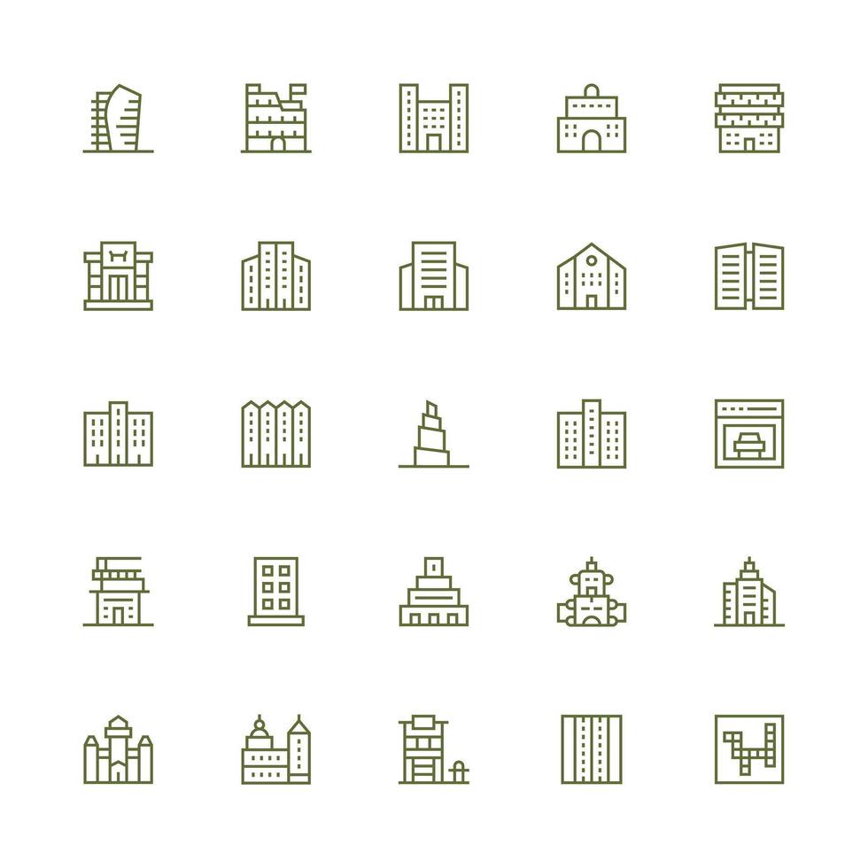 25 Medium Stroke Outline Icons for Multistory Graphics UI Icon Set Free Vector