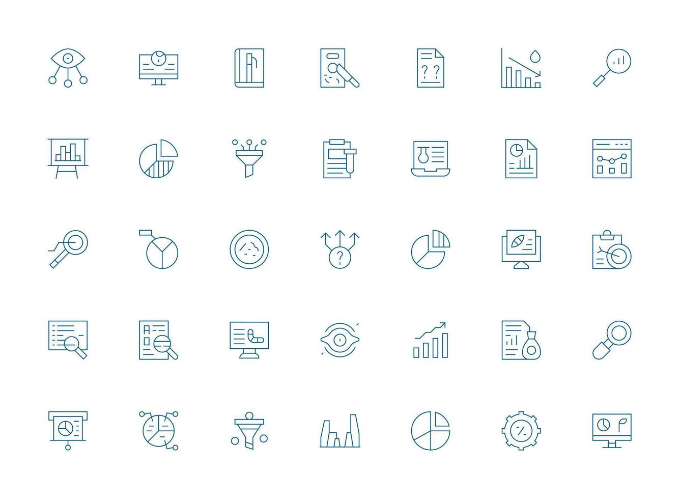 35 Icons for Data Analysis in Light Line Format Dashboard Icon Series vector