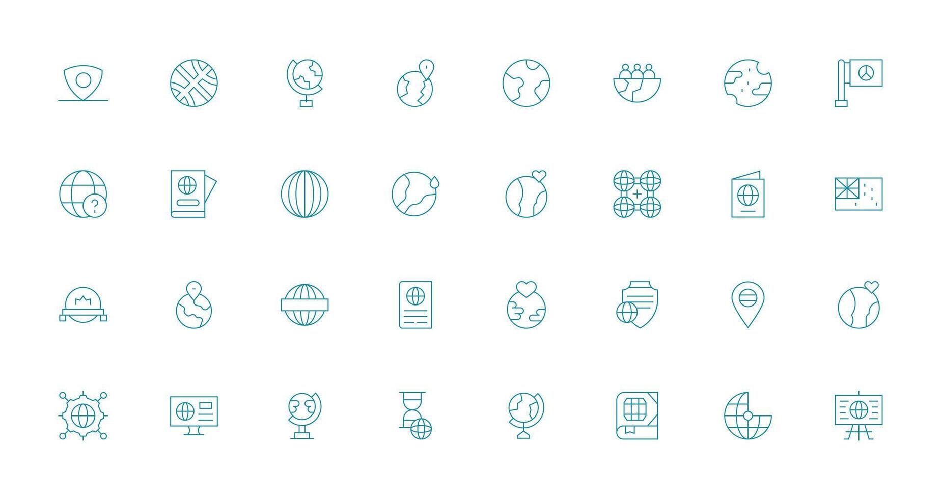 Thin Line Style World Icons with 32 Vectors Neatly Designed Icons for Web Platforms
