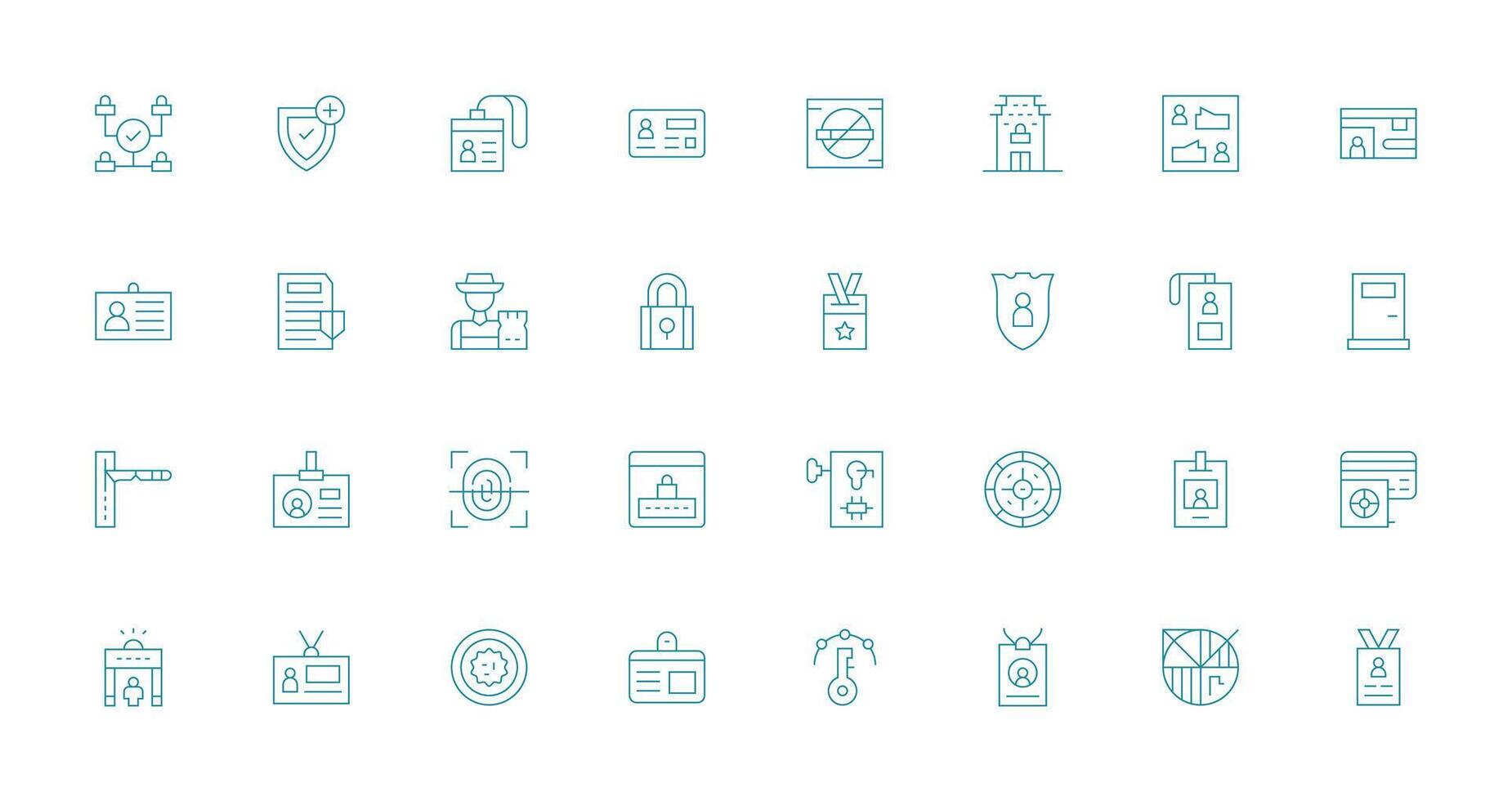 Access Control Design Icons featuring 32 in Thin Line Style Sharp Icons for Presentations vector